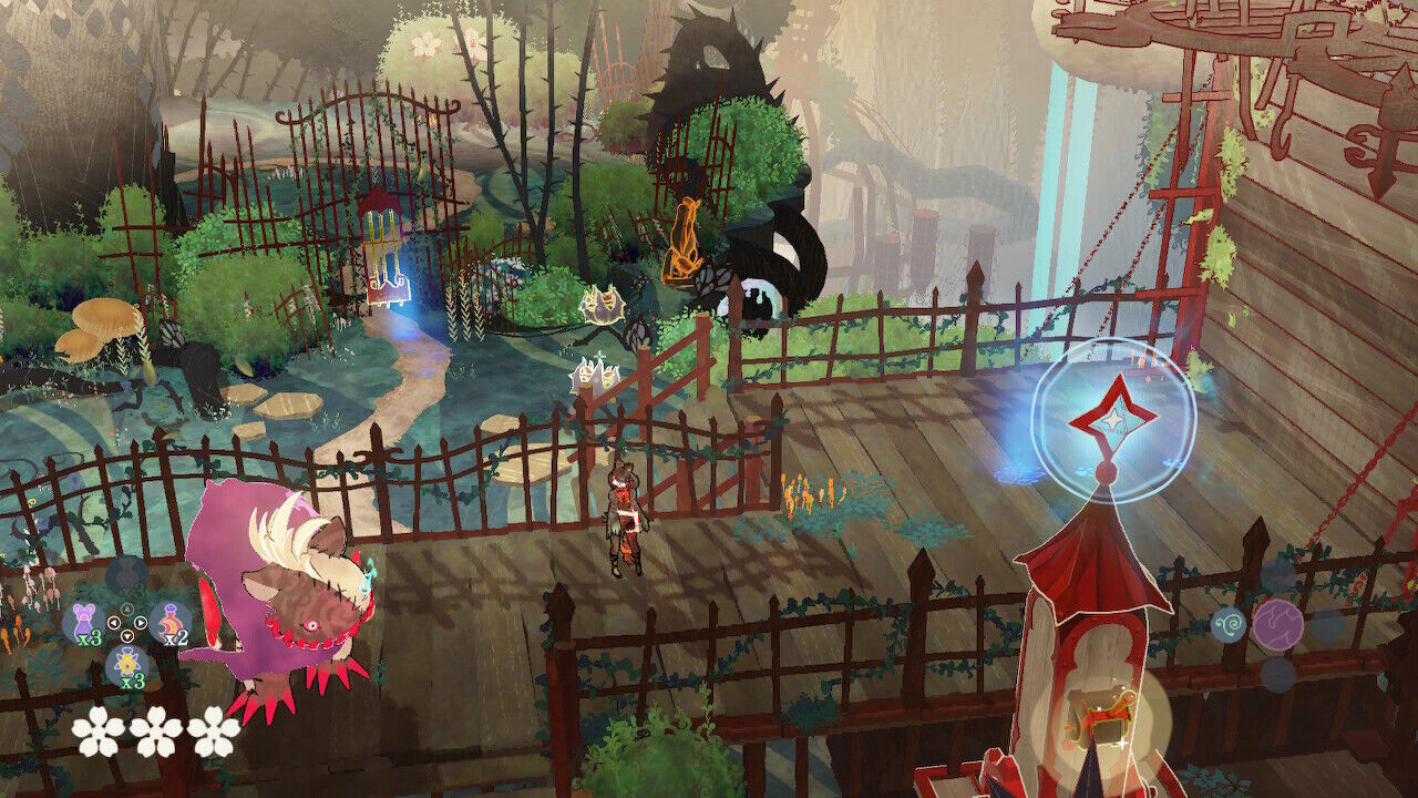 El sistema de control os resultará muy familiar si habéis jugado a Brothers: A Tale of Two Sons, ya que con el Joy-Con izquierdo manejaremos a Cereza y con el derecho a Cheshire. Como podréis intuir, cada uno tiene sus propias habilidades y particularidades, algo que deberemos aprovechar en nuestro favor para superar situaciones de todo tipo.