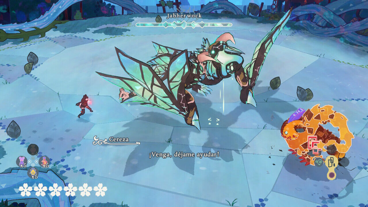 Si bien a nivel mecánico pueden resultar demasiado sencillas, el título se las apaña para introducir constantemente nuevos tipos de enemigos con sus propias peculiaridades a las que nos debemos adaptar, ya sea usando un elemento concreto contra ellos, teniéndoles que arrebatar su escudo, huyendo de ellos antes de que exploten o atrapándolos con las enredaderas de Cereza para impedir que puedan esquivar nuestros ataques, por mencionar tan solo unos pocos ejemplos. De esta forma, siempre nos están obligando a hacer varias cosas y se evitan que los enfrentamientos puedan caer en la monotonía.