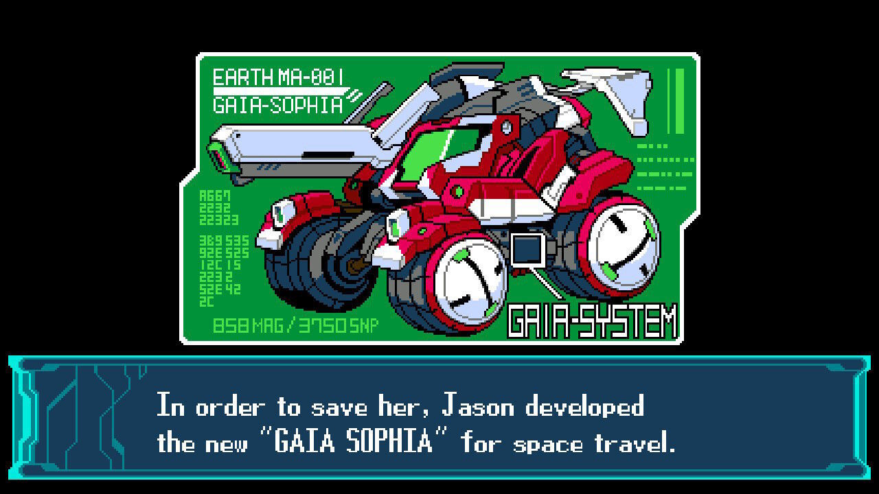 Pero si existe un aspecto que siempre ha diferenciado a esta franquicia de los demás títulos similares es la posibilidad de explorar dichos fondos tanto a bordo del vehículo blindado como, también, a pie. Esto último no suele ser muy recomendable dado que de esta forma perdemos potencia de ataque y resistencia, pero que conste que podemos hacerlo en cualquier momento pulsando un botón. Dicha característica se torna todavía más relevante cuando llegamos a ciertos puntos del mapeado (mazmorras y lugares similares) en los que, de manera obligatoria, nos toca abandonar la seguridad (relativa) que nos proporciona el mencionado tanque con ruedas G-Sophia SV. En estas situaciones, la perspectiva y el scroll lateral que nos acompañan en todo momento dejan paso a una vista isométrica y scroll multidireccional para acoger niveles especiales donde la acción es el elemento predominante, pudiendo emplear distintas armas para deshacernos de rivales diversos, incluyendo jefes finales. Y a esto se unen ciertos puzles sencillos pero que dinamizan algo el desarrollo de estos niveles.