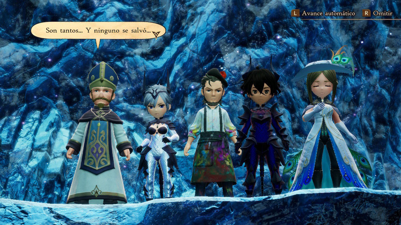 Su premisa argumental no podría ser más clásica: cuatro héroes elegidos deben emprender un viaje para recuperar los cristales elementales, devolver el equilibrio al mundo y, de paso, batallar contra un cruel imperio y evitar que despierte un antiguo mal. Si bien esto es algo que ya hemos visto mil veces y las primeras horas no son nada prometedoras, tenemos que admitir que su desarrollo ha conseguido sorprendernos, tanto por lo oscuros y dramáticos que resultan los guiones de ciertos capítulos como por las auténticas locuras que hace el juego en su recta final, construyendo de paso algunos momentos muy épicos y emocionantes además de obligarnos a realizar una serie de cosas muy inesperadas para poder seguir avanzando.