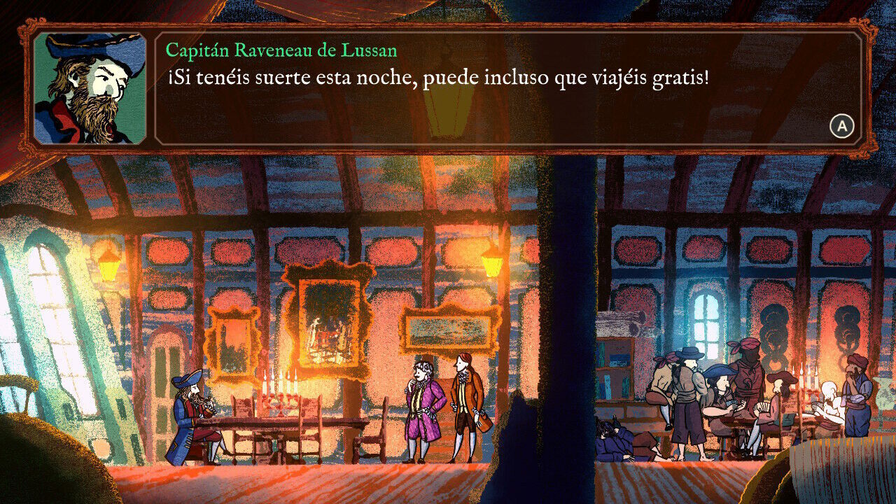 A lo largo de nuestro viaje por Francia iremos encontrándonos con una plantilla de personajes de lo más pintoresco, muchos de ellos inspirados en personas reales de aquella época, como Voltaire o el propio Conde de Saint Germain. Con el habitual tono guasón de Nerial, las conversaciones mundanas se entrelazan con otros momentos más sobrenaturales que nos llevarán a jugar a las cartas con la mismísima Muerte: cada vez que nos pillen y muramos tendremos una oportunidad de recuperar el progreso justo antes de donde fallamos, ya sea pagando un pequeño peaje por volver del inframundo o engañando a la Parca con uno de nuestros trucos. Es una singular mecánica que comprende y aprovecha un ciclo de progreso clásico en favor de un divertido estilo literario.