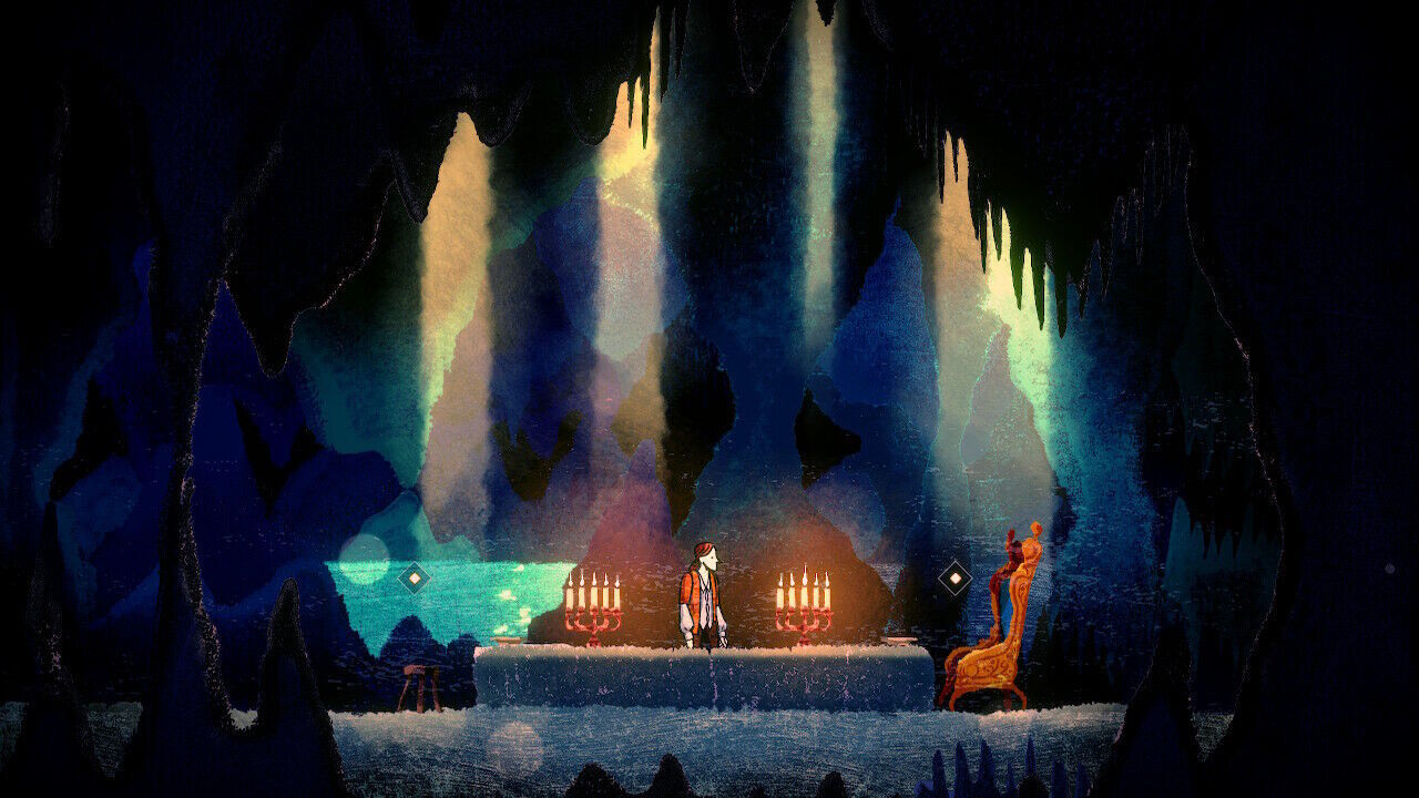 Hemos dejado para el final una de las bondades de Card Shark que más salta a la vista, y lo hemos hecho precisamente por eso: el apartado audiovisual del juego de Nerial enamora desde el momento en el que la mirada se posa en esos escenarios coloridos dibujados como si fueran una ilustración tradicional, pero con el movimiento, la iluminación y la vida que le da la adaptación al videojuego. El inconfundible estilo de Nicolai Troshinsky gana enteros en esta obra, tanto en las escenas abiertas en las que movemos al personaje de izquierda a derecha como en los planos detalle que crean tiros de cámara específicos para cada truco, permitiéndonos no sólo ver, sino también tener agencia en cada movimiento de carta: la baraja se mueve por las manos del protagonista de una forma gratificante, al ritmo que pulsamos los botones, los naipes se doblan, el vino cae dependiendo de la intensidad con la que giremos la palanca… Toda esta atención al detalle del apartado visual se refleja también en la banda sonora de Andrea Boccadoro, que recoge a la perfección los estilos de la música cortesana que le atribuimos al siglo XVIII. A nivel estético es un videojuego sobresaliente.
