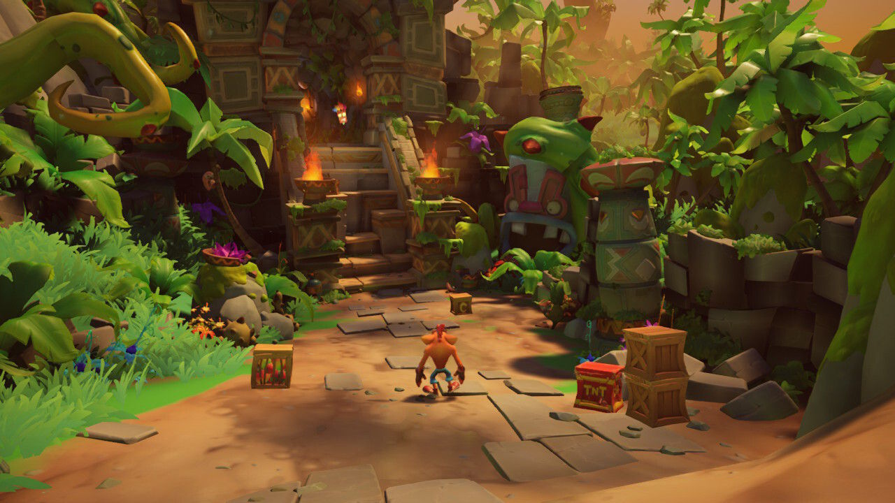 Dicho esto, lo primero que tenemos que comentar es que nos encontramos ante exactamente la misma aventura que pudimos disfrutar en 2020 sin ningún tipo de cambios ni en sus contenidos ni en su fórmula jugable. Por lo tanto, podremos volver a disfrutar de un descomunal viaje a lo largo de infinidad de mundos y niveles lineales por los que deberemos avanzar saltando, esquivando trampas y enemigos, rompiendo cajas, encontrando coleccionables y amasando wumpas a diestro y siniestro, ya sea avanzando hacia el fondo, moviéndonos hacia los lados con una cámara lateral o incluso corriendo hacia la cámara mientras algún peligro nos persigue.