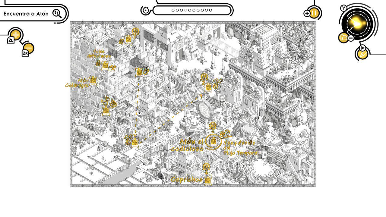 Al incluir en todos esos mapas 10 momentos temporales —llamados TIC—, las posibilidades se amplían considerablemente y en ningún momento resulta aburrido buscar el objetivo por los mapas, y la mayoría de las veces no es tan sencillo como buscar al mismo personaje en distintos puntos del escenario, ya que puede que se haya cambiado de ropa o se le vea desde una perspectiva diferente.