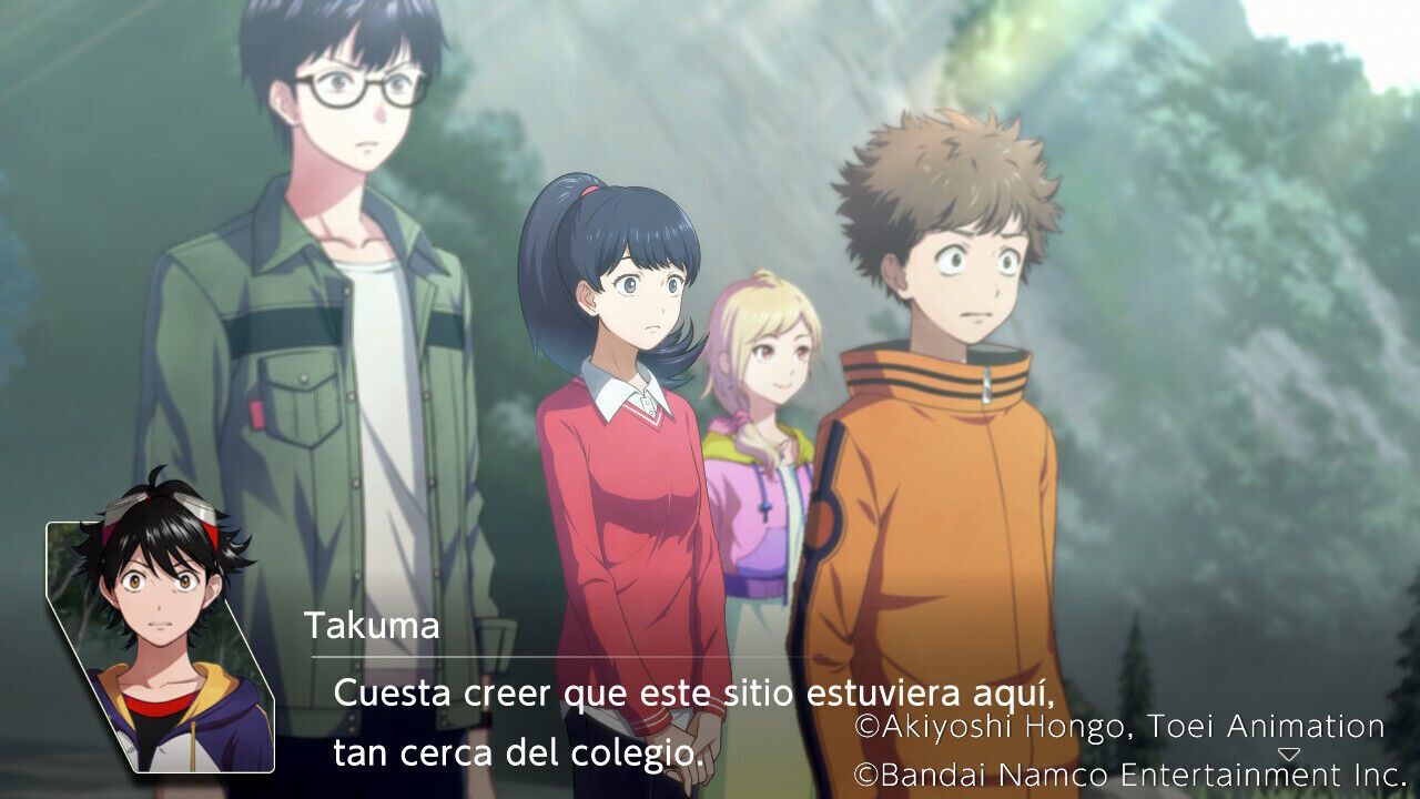 Lo primero que tenemos que dejar claro es que Digimon Survive es, en esencia, una novela visual. Sí, hay combates tácticos por turnos, pero lo que prima aquí es la narrativa y leer ingentes cantidades de texto, por lo que las batallas quedan en un plano muy secundario y casi anecdótico. Aclarado esto, decir que su historia toma como punto de partida una premisa muy similar a la de la mítica Digimon Adventure, presentándonos a un grupo de jóvenes que acaban perdidos en otro mundo durante un campamento de verano. Como podréis intuir, en él conocerán a sus compañeros Digimon predestinados y junto a ellos tendrán que vivir montones de aventuras para encontrar la forma de regresar a casa.