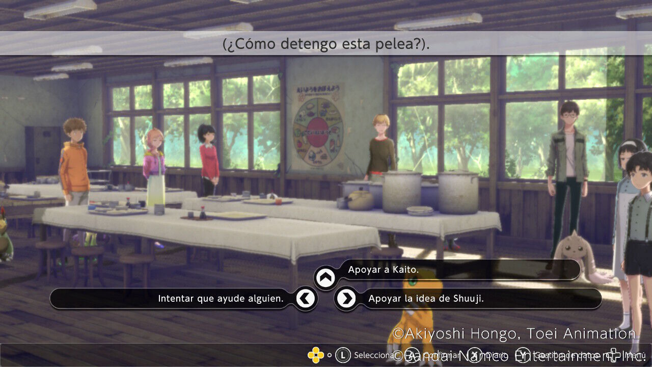 En general, existen dos tipos de elecciones: las de karma y las de afinidad. Las primeras responden a un sistema de moralidad que hará que ganemos puntos de Moral por escoger la respuesta de la izquierda, de Ira por seleccionar la superior y de Armonía si nos decantamos por la derecha. Dependiendo de los puntos que acumulemos en estos tres atributos, nuestro Agumon evolucionará a unas cosas u otras y se nos abrirán las puertas para acceder a una o varias de las tres grandes rutas argumentales de la historia en el único momento donde esta sí se ramifica, algo que el propio juego se encargará de avisarnos para que guardemos partida.