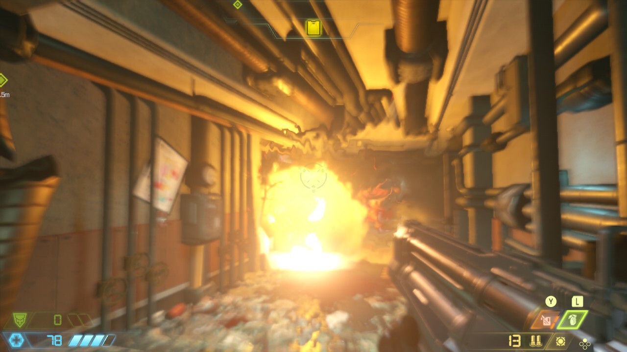 Como os podéis imaginar, en este análisis nos vamos a centrar en la versión de Switch, ya que, virtualmente, es el mismo juego que tenemos en ordenador y en consolas. Ya sabéis que se trata de un juegazo increíble, en el que no sólo es divertido disparar, sino que está fantásticamente diseñado, con una gran cantidad de mecánicas que se entrelazan y que brillan en los niveles más altos de dificultad, obligándonos a usarlas con cabeza para conseguir salud, escudo y munición, e incluso nos animan a conocer los escenarios y dosificar los objetos repartidos por estos. Si queréis saber más de juego como tal, os animamos a leer nuestro análisis de la versión de PC.