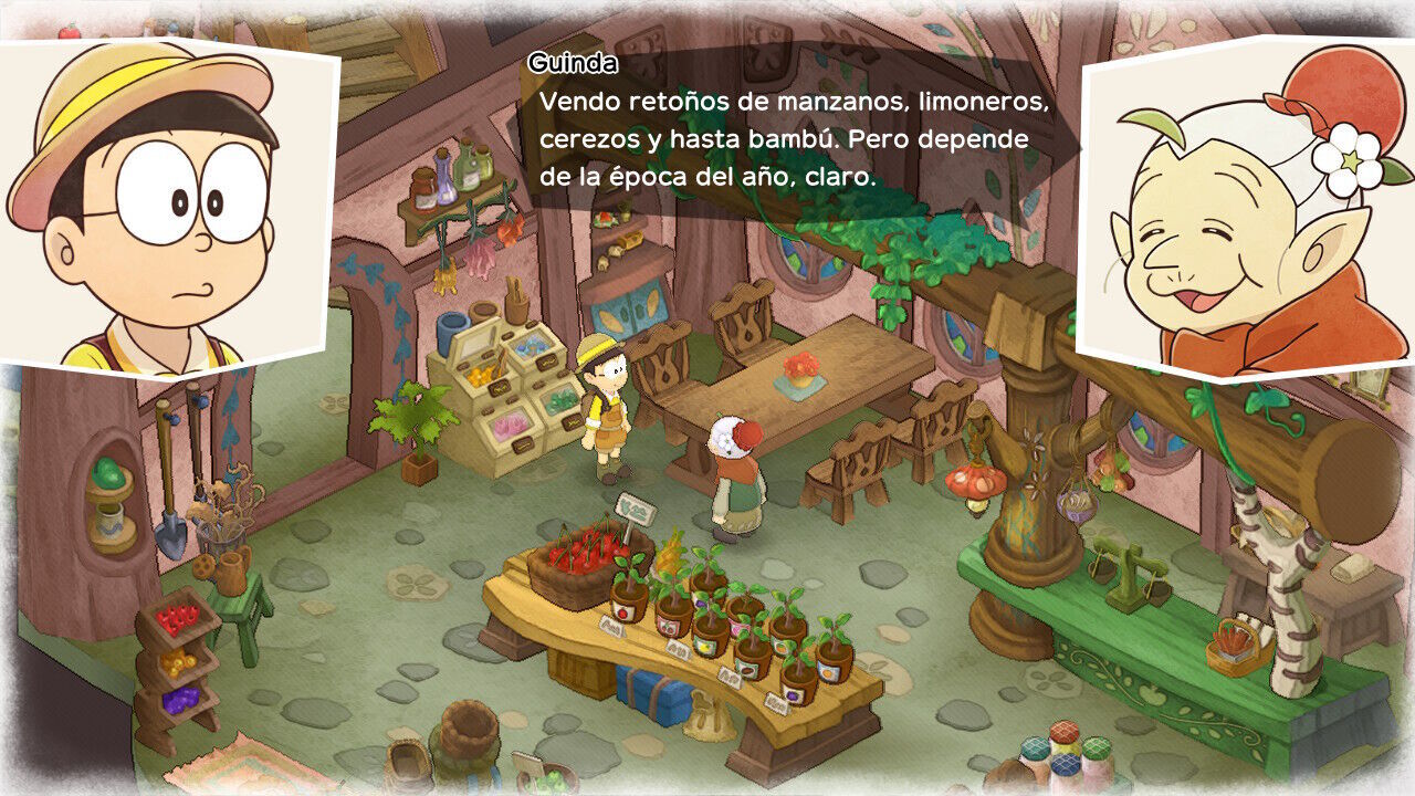 La fórmula no se desvía mucho de un Story of Season o lo que podríamos esperar de estos simuladores salvo por la parte fantástica de Doraemon y los gadgets que iremos desbloqueando, que tan pronto nos pueden llevar al fondo del mar como a surcar los cielos con el gorrocópetero. Comenzamos plantando semillas en un pequeño huerto para ganar dinero y empezar un ciclo de expansión con nuevas tareas, animales y en definitiva, un flujo de producción que mantenga el negocio a flote. El tiempo juega en nuestra contra y limita lo que podemos hacer en una jornada, las estaciones nos obligan a cambiar el tipo de plantaciones gestionar todas esas tareas que necesitan un cuidado diario.