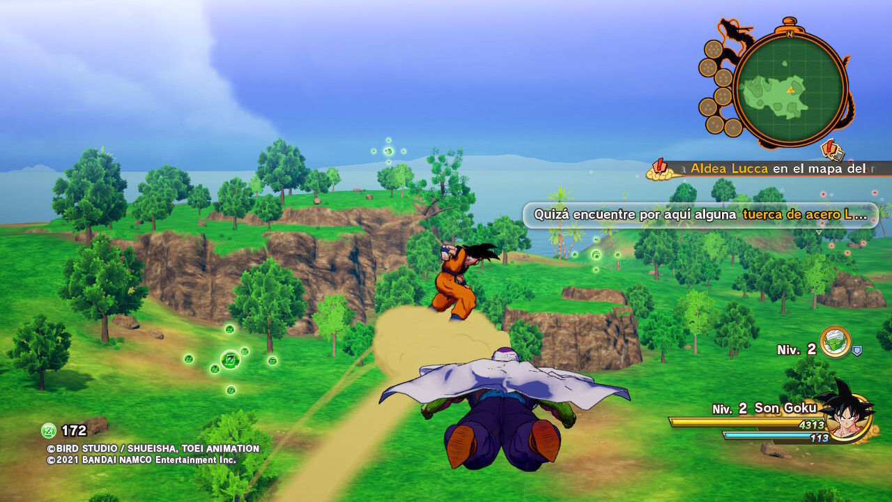 El ritmo esta vez lo pone el jugador, porque tenemos un mundo para explorar libremente sobrevolando los terrenos conocidos con recursos, aprendizaje de nuevas técnicas, ingredientes, un minijuego de pesca, cocina, entrenamiento, caza, combates contra enemigos menores y la búsqueda de las Dragon Ball. Lógicamente el contenido desbloqueado va acorde con el progreso en la historia, que es la que dicta qué personajes o actividades podemos realizar en cada momento para no romper la coherencia.