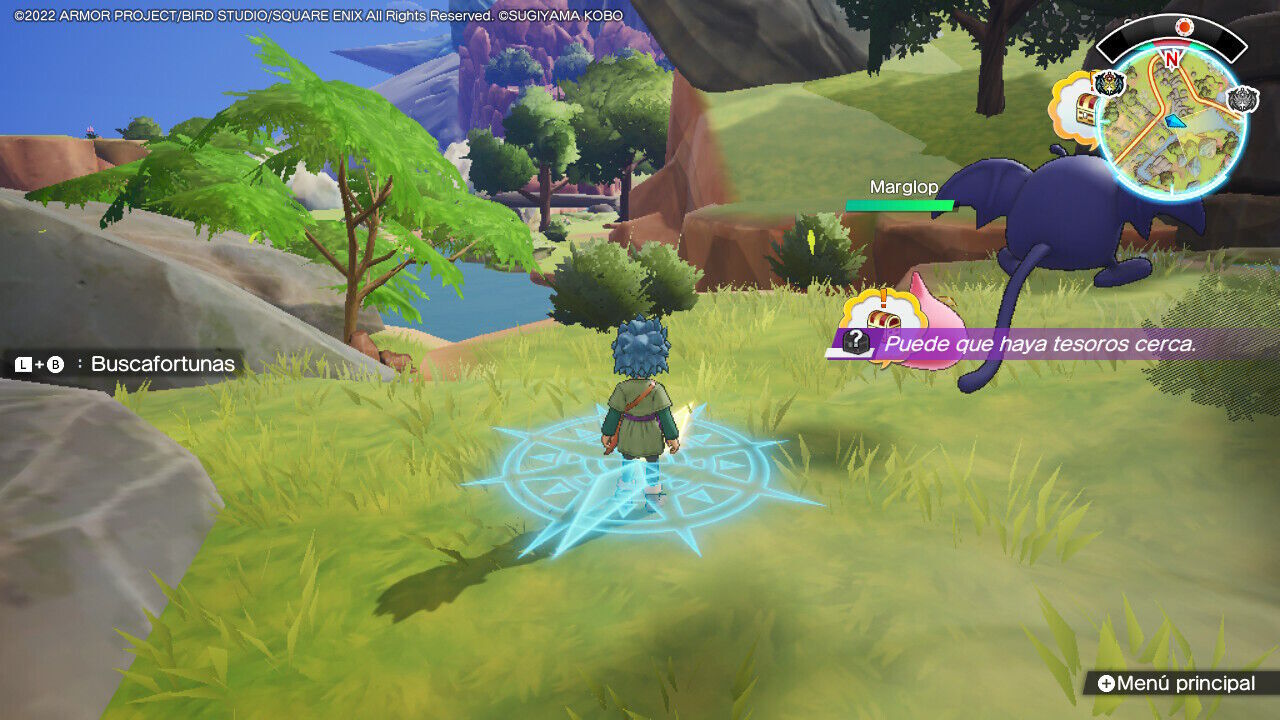 Una de las primeras mecánicas que se nos muestra consiste en aliarse con los monstruos típicos de Dragon Quest para recibir "visiones mágicas" que revelan el escondite de estas reliquias, es decir, capturas de una localización que debemos encontrar gracias a las pistas del escenario. La vista de cada criatura es algo diferente, y cuando tengamos varios monstruos en el equipo, se nos darán tres fotografías de la ubicación pero en distintos ángulos, en blanco y negro, con manchas de barro… Pronto esto se complementará con una especie de brújula, y combinando ambas herramientas, es fácil detectar los tesoros ocultos a simple vista y volver a casa con el botín para aumentar nuestras arcas.