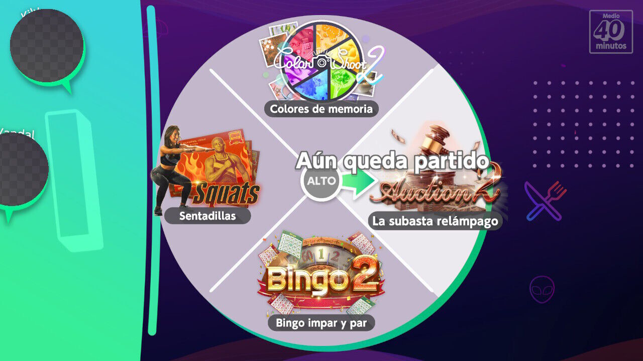Otro juego específico para móvil, Bingo, convierte la pantalla en un cartón de bingo y hay que conseguir una línea de cinco números. El cuidado en el detalle y el interés en que no decaiga en ningún momento el ritmo del juego se nota en que, por ejemplo, en este juego a veces aparecen tres números en lugar de uno, lo que da más emoción, y que cada equipo se turna para parar la ruleta con los números, con lo que intenta hacerlo en aquellos que más le conviene (y no es fácil).