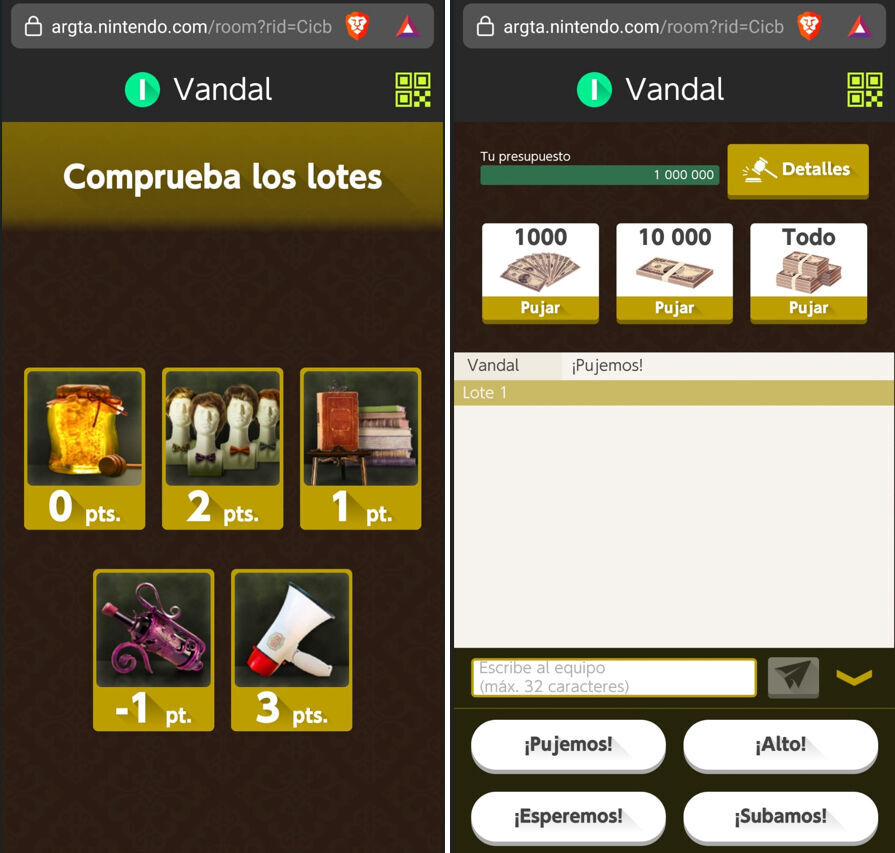 Hay otros casos en los que esta coordinación es incluso más importante, en el minijuego La Subasta los equipos van pujando por varios objetos y existe la opción de indicar a los demás miembros del equipo si se sigue subiendo la puja o hay que parar. Este juego es de los más complejos de entender y tiene una larga explicación que puede llegar a cortar el ritmo, mientras que en los demás juegos las explicaciones son bastante sencillas aunque exhaustivas. No se trata de que todos los juegos sean rápidos como en un Wario Ware pero sí corta un poco el por otro lado ritmo ágil de las partidas. La pantalla del móvil se utiliza para ver el valor de los objetos que se subastan para cada equipo, ya que son diferentes.