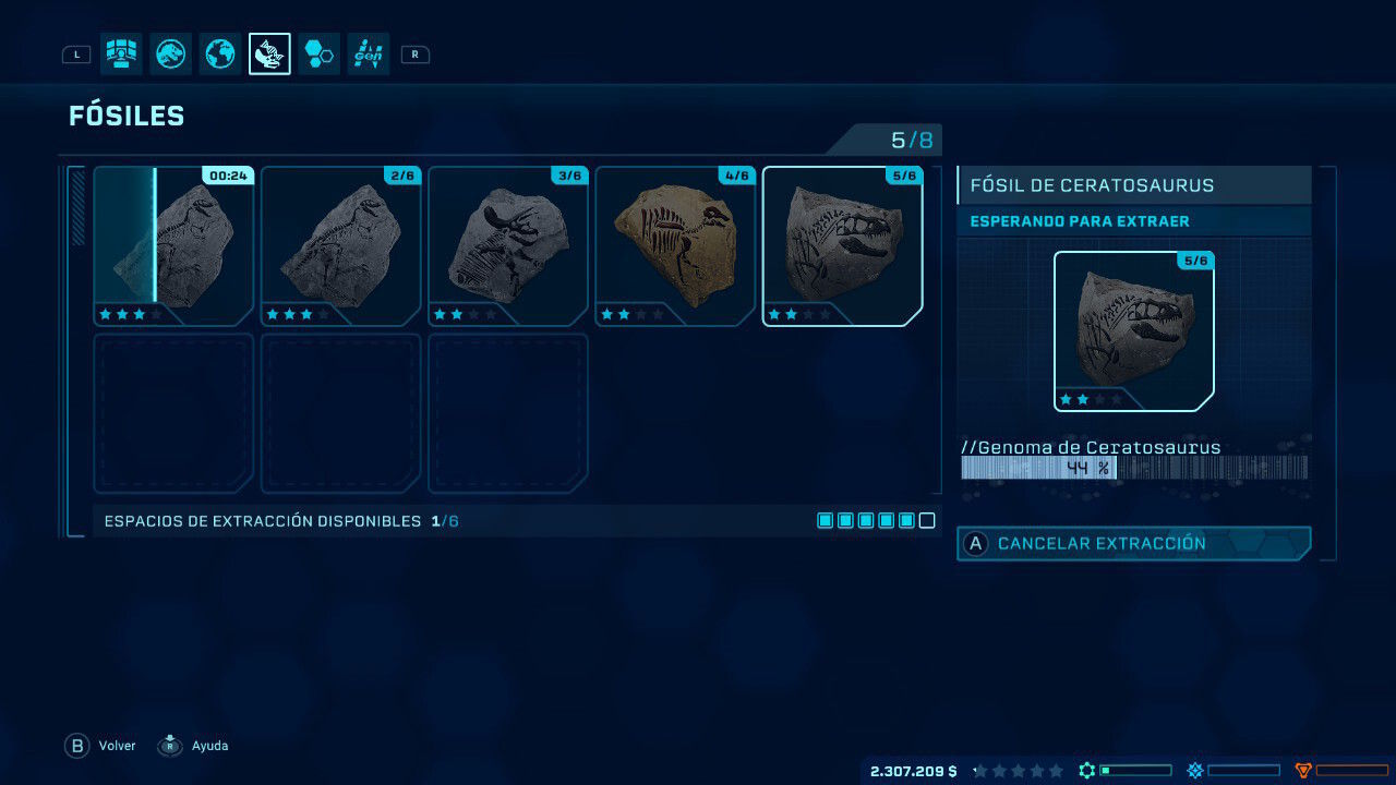 En apenas unos minutos comprenderemos la mecánica sobre la que se sustenta todo, y aprenderemos a manejarnos con solvencia en lo que podríamos llamar el flujo de la partida. Como es lógico, debemos crear tantos dinosaurios como seamos capaces, poniendo el foco en la variedad y en la calidad de los mismos, diseñando instalaciones y recintos acordes y buscando la manera de venderlos como atractivos de nuestro parque. Para crear un dinosaurio tendremos que mandar expediciones por todos los yacimientos de fósiles imaginables del mundo, buscando extraer el genoma de distintas especies.