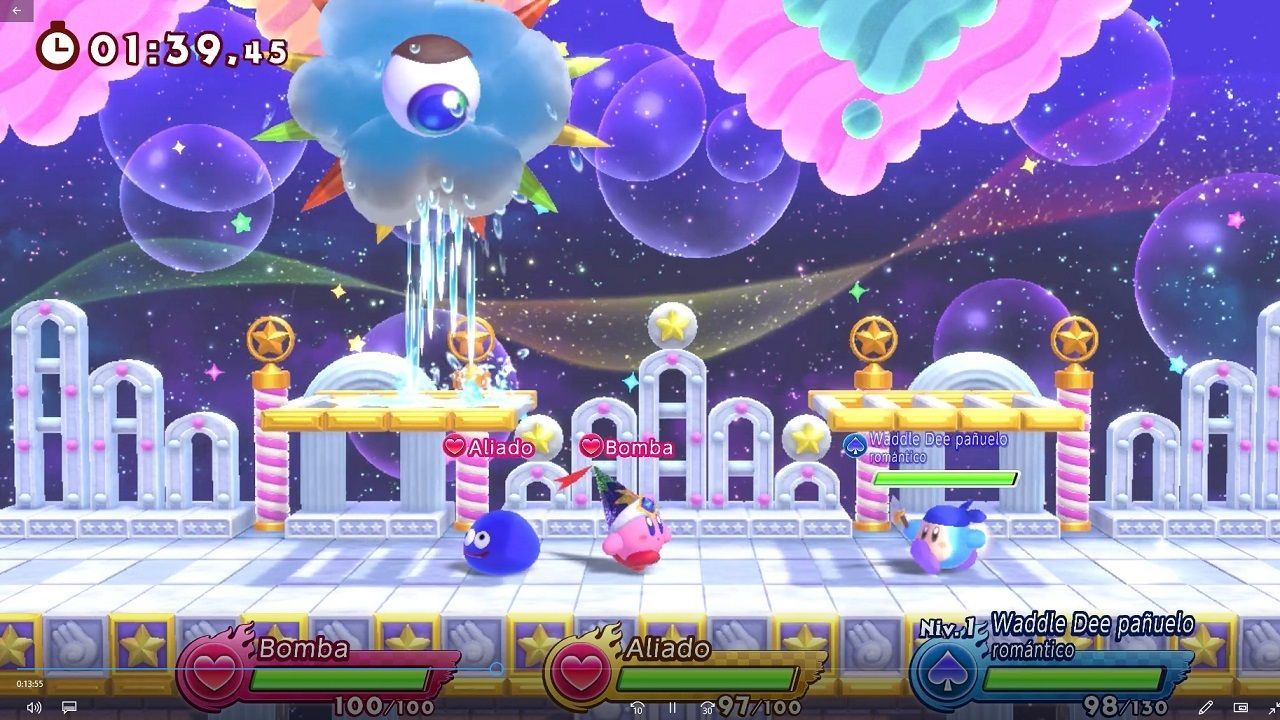 Pasando ya a repasar su acabado visual, seguramente ya sabéis lo que os vais a encontrar. Las animaciones de Kirby y del resto de los personajes que se dan cita en el juego son excelentes, algo que sucede con la inmensa mayoría de los títulos protagonizados por esta adorable bola rosa de Nintendo. Los decorados son algo más irregulares, y los hay excesivamente básicos (aunque bien realizados) que contrastan con otros en los que se dan cita elementos y personajes móviles que les dotan de mucho más encanto y dinamismo. Y a esto se une la sensacional fluidez a la que se desarrollan las peleas, 60 fps, algo esencial en este tipo de arcades de lucha. Y en lo relativo a su apartado sonoro, las melodías clásicas de Kirby amenizan perfectamente las batallas, mientras que los variados efectos sonoros dan mucha vida al desarrollo.
