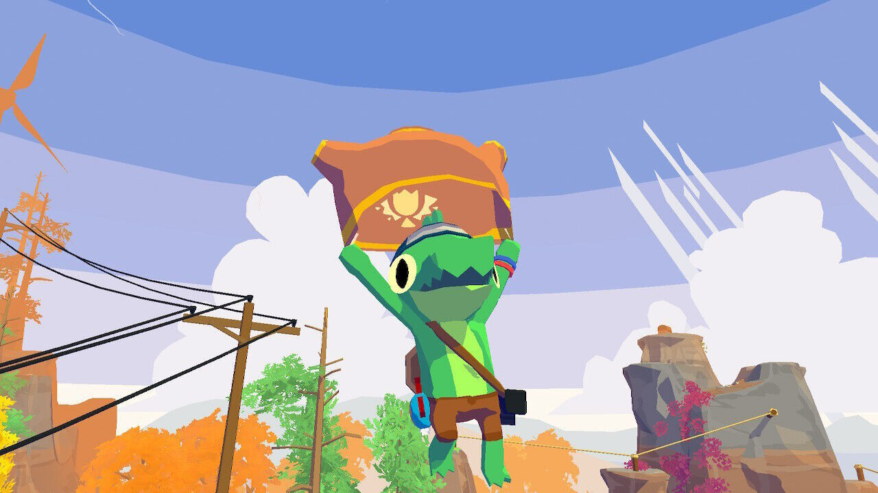 En Lil Gator Game tenemos libertad de movimiento casi completa, de ninguna otra forma podría entenderse este juego: es un mundo abierto (no demasiado grande, pero lo suficiente como para no quedarse pequeño) que podemos recorrer como nos venga en gana. Si empezábamos comparando el juego con la saga Zelda es porque la filosofía de diseño de este indie bebe directamente (a veces casi demasiado) de The Legend of Zelda: Breath of the Wild: el personaje se pega en cualquier superficie para escalarla, hay círculos de estamina que podemos mejorar, tenemos una espada y un escudo con el que deslizarnos ladera abajo, e incluso tenemos una paravela, aunque aquí es una camiseta.