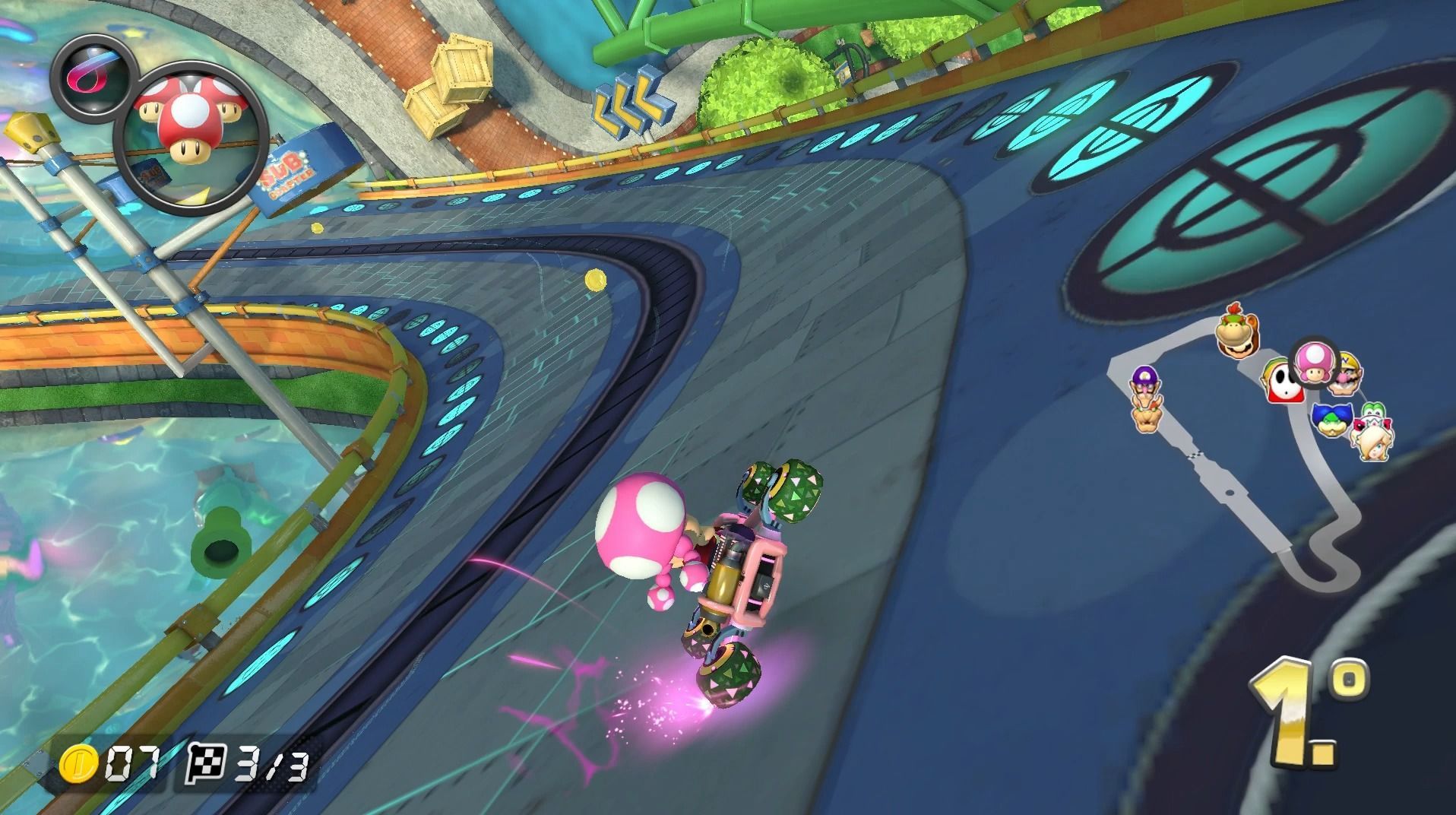 Buscando ofrecer la mayor variedad posible contamos con un total de 48 circuitos, los 32 originales y los 16 que fueron lanzados en posteriores DLC. Todos ellos tienen un genial diseño de niveles y ofrecen una experiencia única y divertida. Sin embargo, echamos en falta alguna incorporación nueva que no estuviese en la versión de WiiU.
