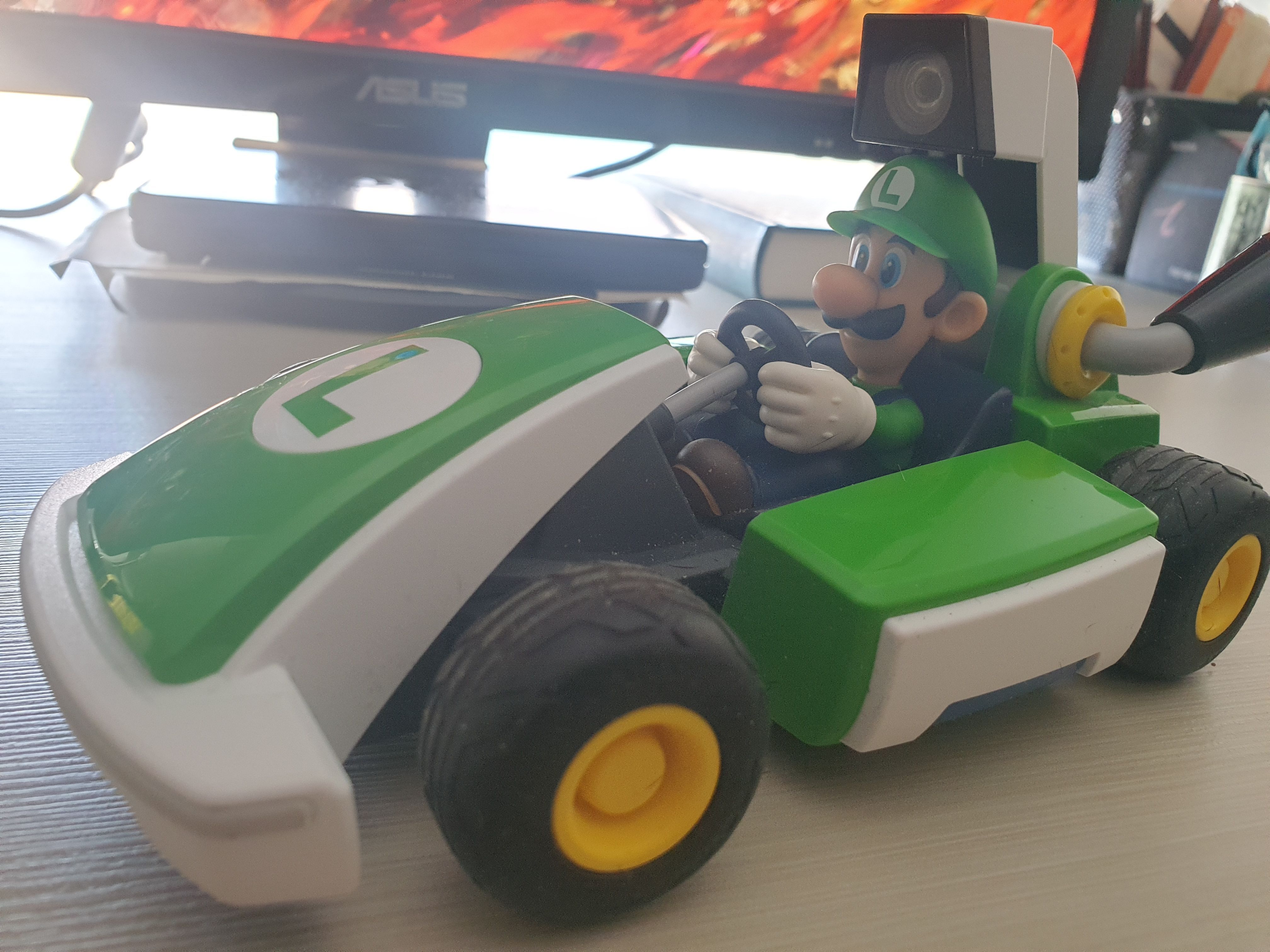 Así pues, nos encontramos ante un juego de carreras muy especial en el que usaremos un pequeño coche radiocontrol con la forma de Mario o Luigi (dependiendo de la edición que compremos) que tiene una cámara integrada. A través de ella veremos en la pantalla de nuestra consola o en el televisor los lugares por los que pase el vehículo, pero gracias a la realidad aumentada el "juguete" cobrará vida y nos mostrará una versión virtual perfectamente modelada y animada de nuestros fontaneros favoritos. Evidentemente, al competir también veremos los límites del circuito, a nuestros rivales, los obstáculos de cada escenario, las típicas cajas de objetos de la saga, etcétera.