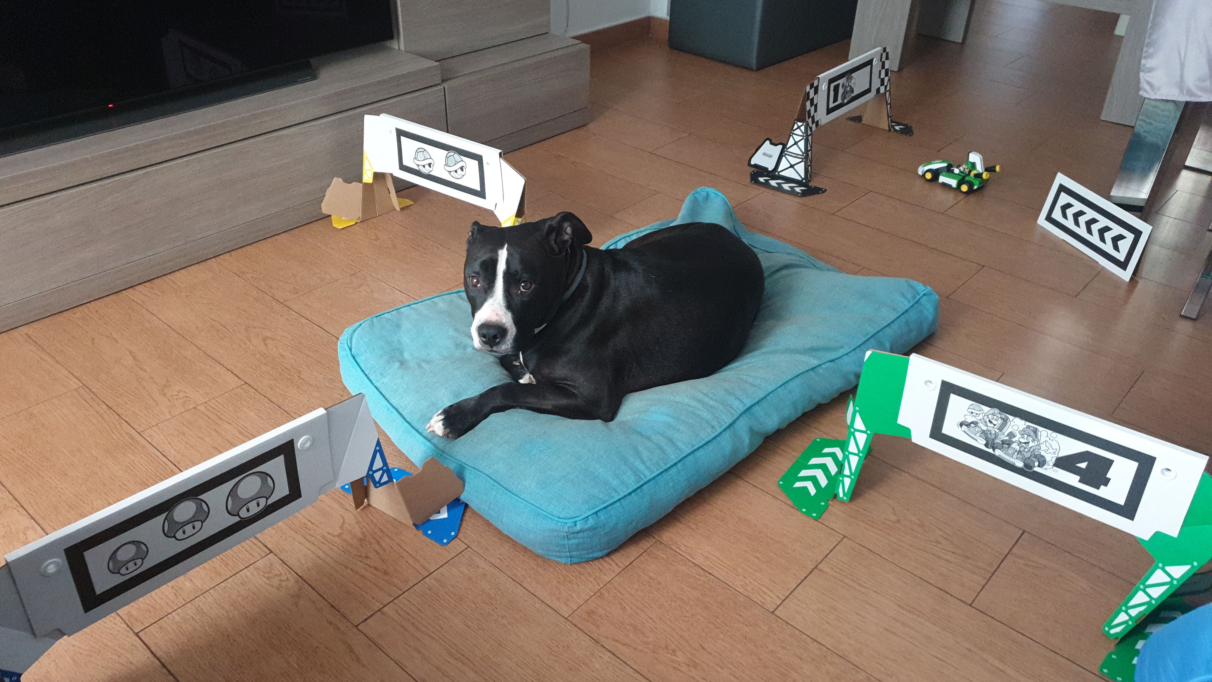 Como podréis suponer, esto nos abre la posibilidad de crear nuestros propios trazados en el salón de nuestro hogar o en cualquier habitación lo suficientemente amplia como para colocar los cuatro arcos de cartón que se incluyen junto al juego, unos accesorios importantísimos, pues en ellos podremos colocar las cajas de ítems y un buen montón de trampas que nos complicarán las cosas en cada vuelta. Además, para validar un circuito tendremos que pasar por todos ellos, así que son una pieza tan fundamental del producto como el propio kart.