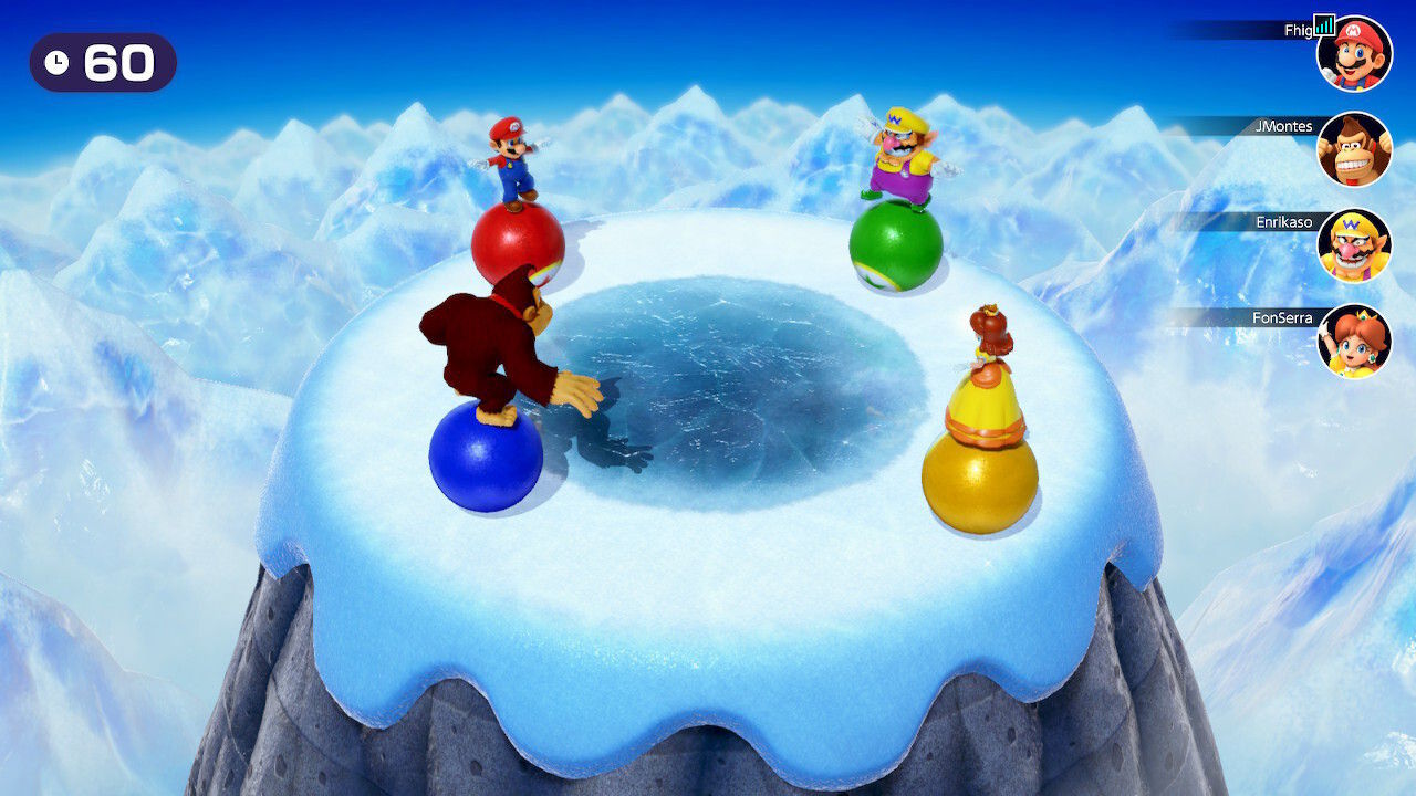 Siguiendo con los aspectos positivos de esta modalidad, incluye un buen número de opciones para que, por ejemplo, podamos suspender y guardar una partida con amigos y retomarla más tarde o incluso ampliar el número de rondas en cualquier momento. Y sí, una vez entréis en una sala no será necesario que os salgáis y os vuelvan a invitar para cambiar de tablero, reglas, personajes o modos. Son detalles que no siempre se cuidan demasiado en los juegos de Nintendo y que hacen que los modos online de muchos de sus títulos vayan un paso por detrás de los de otras compañías, pero que aquí sí que se han mimado para hacer que la experiencia online sea óptima, satisfactoria y fluida.
