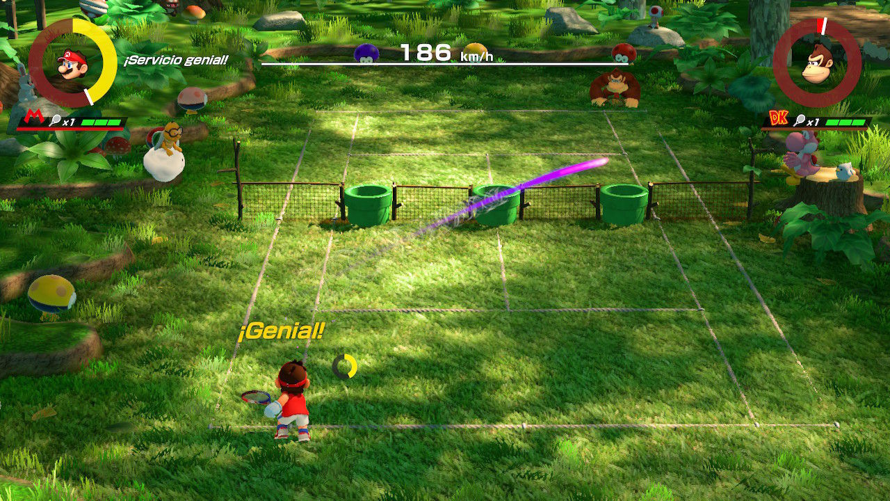 Las mecánicas básicas jugables se ven aderezadas con poderes que nos permiten alcanzar pelotas imposibles, realizar golpes especiales o golpes ultraespeciales, siempre y cuando tengamos la suficiente energía. Esta energía, dicho sea de paso, se consigue realizando golpes cargados, que también imprimirán más velocidad o efecto a la bola. Esta idea potencia el jugar como en la vida real, moviéndose por la pista para anticiparnos al golpe del rival y, en este caso, poder cargar el golpe.
