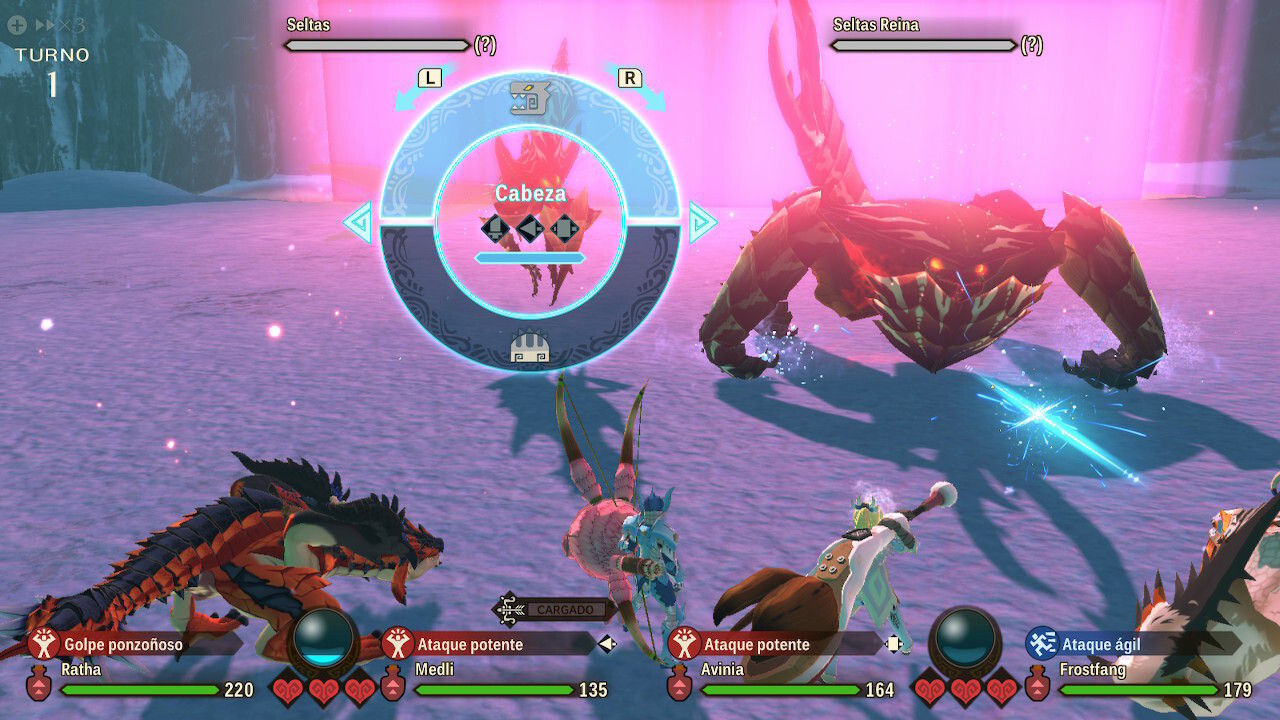 Una de las grandes novedades de esta entrega la tenemos en el hecho de que ahora podremos ser acompañados por otro rider y su Monstie o por un cazador, quienes nos ayudarán a la hora de luchar y con quienes podremos realizar ataques cooperativos. Nuestros compañeros dependerán del instante de la historia en el que nos encontremos y son tremendamente útiles, aunque os avisamos que son controlados por la IA y que deberemos escoger nuestras acciones atendiendo a lo que van a hacer para así optimizar cada turno.