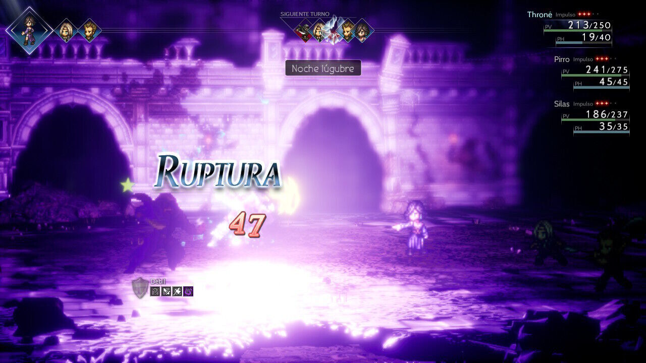 Sí, no todo es perfecto: la gestión del inventario es mejorable, que solo podamos cambiar miembros del grupo en las tabernas y que aquellos que quedan fuera no ganan experiencia, ligeros picos de dificultad en la recta final o las batallas, especialmente contra jefes, tienden a ser demasiado largas -se puede paliar un poco acelerando la velocidad-, pero en general los combates han ganado respecto al primer Octopath Traveler y te da más herramientas para frenar una ofensiva. Defectos menores dentro de un juego que da visibles pasos adelante y afianzan una licencia con gran potencial en el futuro.