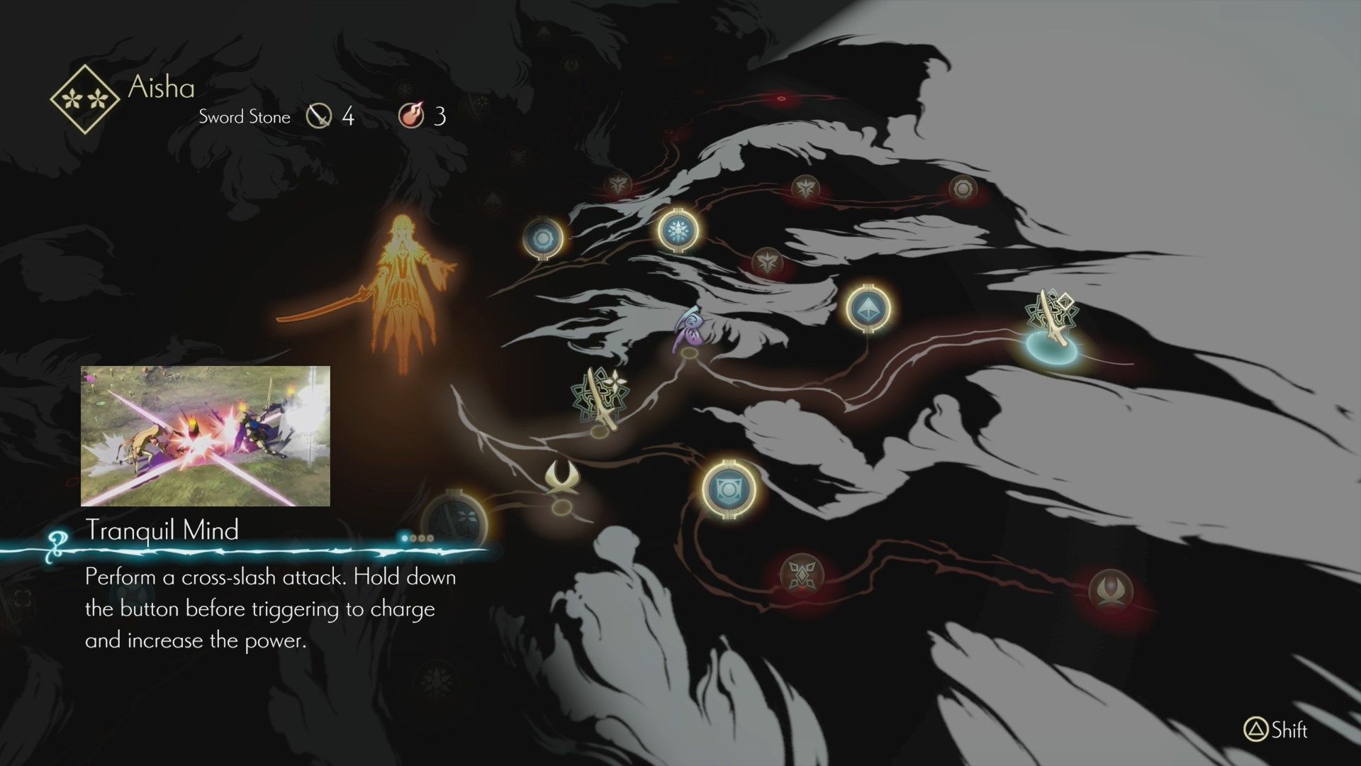 Estos Daemon evolucionan con un árbol de habilidades en el que vamos desbloqueando nodos para aprender nuevas técnicas, y se les pueden equipar armas como si fueran otros compañeros. Al principio es un sistema simplón porque vamos a repetir los mismos ataques una y otra vez, pero encontrando nuevos Daemon y ampliando el abanico de habilidades asignadas esta impresión mejora con el tiempo. Luego también hay una mecánica de afinidad según la posesión del Daemon que permite entrar en un modo de manifestación con mejoras en los parámetros, opción de cancelar acciones y no ser tumbado.