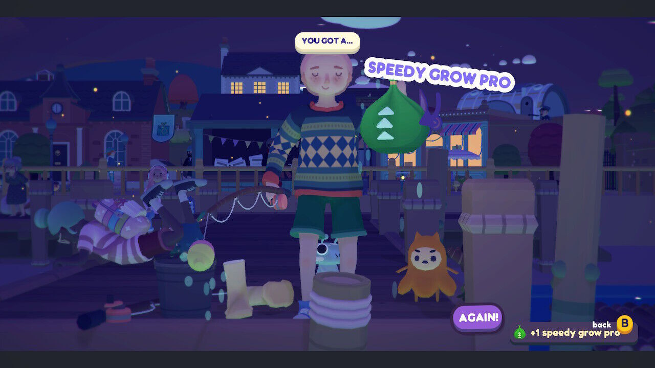 La cuqui aventura de Ooblets comienza cuando llegamos en barco a Badgetown, un pequeño y colorido pueblo donde los humanos conviven con las curiosas criaturas que dan nombre al juego.
