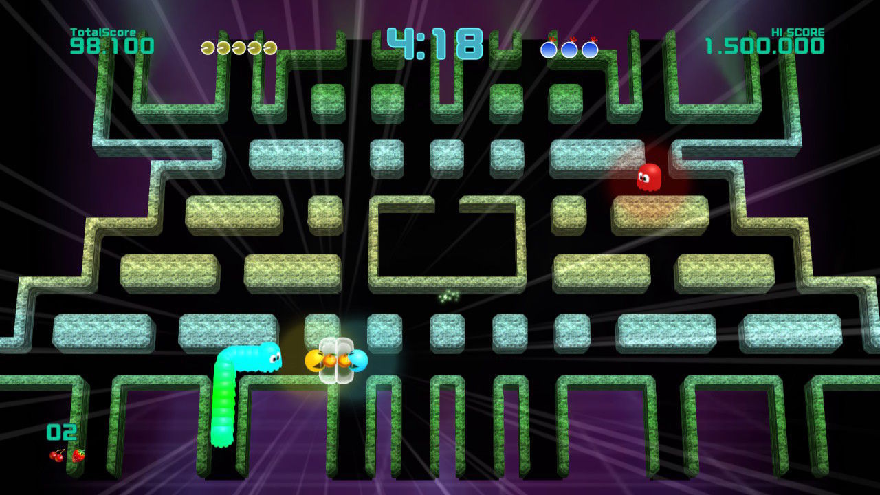 A medida que superamos los niveles la velocidad va aumentando hasta alcanzar unas cotas frenéticas y, al final del todo, nos espera un jefe al que debemos atacar de manera sistemática tanto mediante el salto bomba del que dispone Pac-Man como, también, simplemente rebotando contra él. Una modalidad que ofrece mucha diversión y que pica lo suyo, entre otras cosas porque presenta los clásicos leaderboards en los que podemos ir estableciendo nuestras marcas de puntuación.