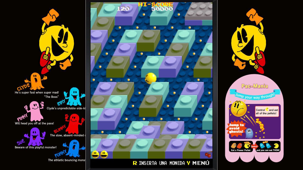 Señalar un pequeño defecto de la sala virtual. El rendimiento, al menos en la versión que hemos jugado de Nintendo Switch –y más en concreto, en modo portátil-, no va tan fluido como nos gustaría. Existe la opción de elegir los juegos con un listado, así que no es necesario ni desplazarse por las recreativas del escenario, pero afea un poco la presentación. Y en cuanto a los juegos en sí en su mayoría no hemos encontrado problemas, pero en Pac-Land por ejemplo es visible el corte de pantalla o screen tearing que tiene difícil justificación.