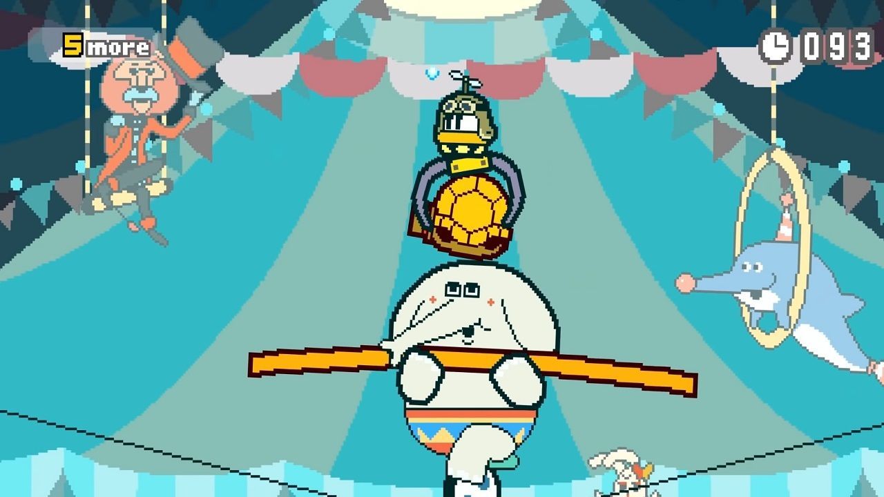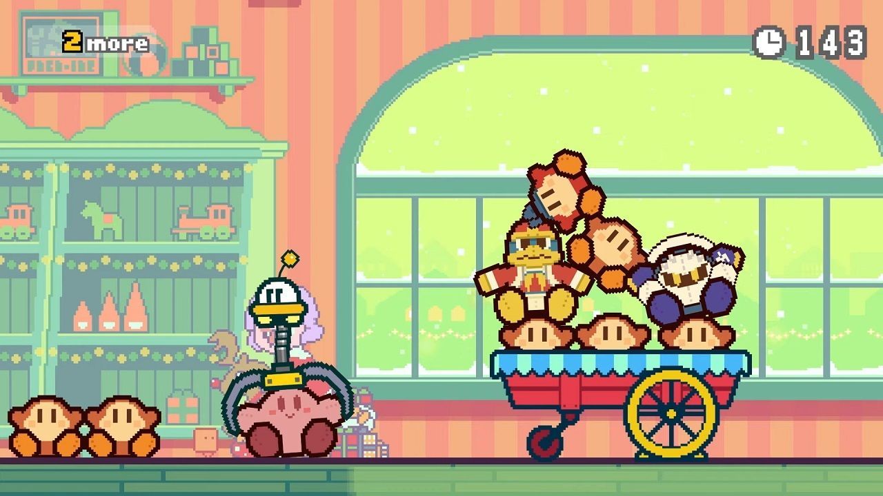 Si algo derrocha por arrobas esta producción es simpatía, eso podéis tenerlo por seguro. HAL Laboratory siempre se ha caracterizado por ofrecer juegos aptos para todos los públicos, y esta no es ninguna excepción. De hecho y más allá de su planteamiento gráfico del que más tarde daremos buena cuenta, los fondos incluyen numerosos personajes que no paran de hacer muecas, guiños clásicos a otros personajes de la casa como Kirby, Meta Knight o BoxBoy y demás detalles capaces de hacer esbozar una sonrisa incluso al más serio de los jugadores. Y al menos para nosotros, esta faceta que muestra Part Time UFO nos ha gustado mucho ya que en nuestros días no aparecen demasiadas propuestas similares en este aspecto.