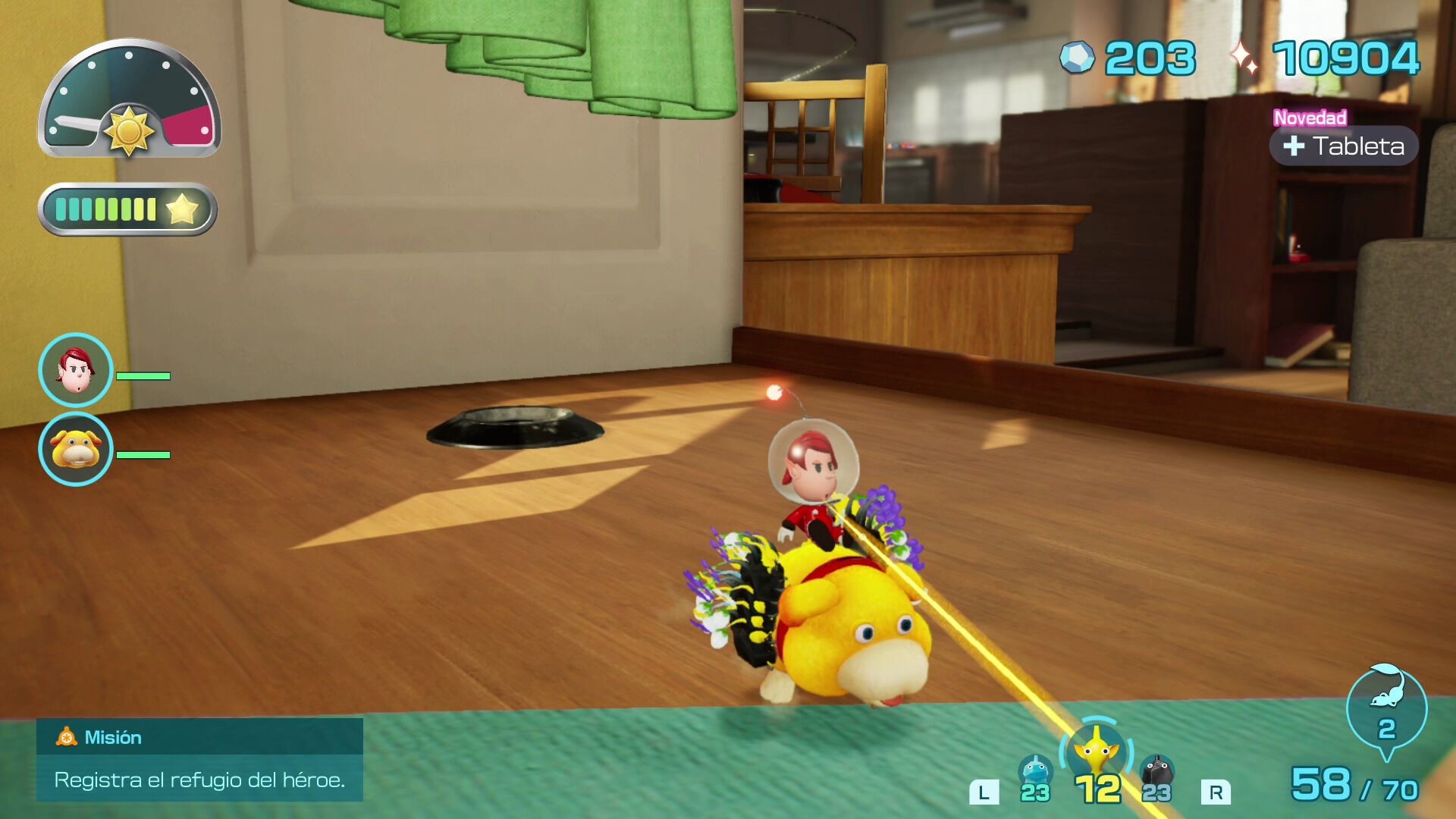 Como veis, hay muchísimo por hacer en Pikmin 4, lo que convierte a esta en la entrega más larga y completa de toda la saga, algo que incluso se acaba volviendo en su contra. Nosotros hemos tardado 23 horas en llegar al final de la historia, un salto considerable respecto a las 12 horas que duraba Pikmin 3 y que ha provocado que lleguemos a su conclusión un tanto agotados por culpa de un sistema de progresión que se estanca con el paso del tiempo y unas cuevas que nos han acabado saturando con su enorme protagonismo y el parecido de sus retos.