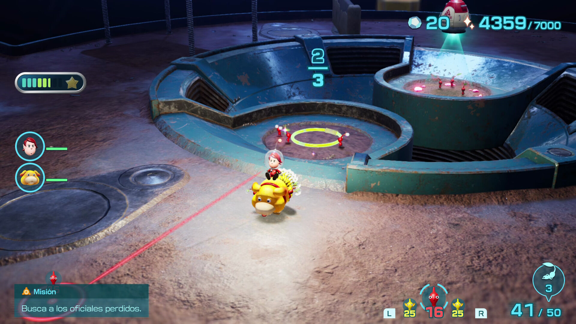 Una de las grandes novedades que trae consigo esta entrega es la inclusión de Ochin, un simpático y utilísimo perrete con el que tendremos que colaborar activamente para avanzar. Tenemos varias formas de interactuar con él, ya sea dándole órdenes como si fuese un Pikmin más para que desentierre ítems, mueva objetos, ataque a enemigos y destruya ciertos obstáculos o controlándolo directamente como si fuese un personaje independiente. Es más, también podemos usarlo como montura, una forma muy práctica de desplazarse por el mapa que, además de permitir que nos movamos a mayor velocidad, también hará que todo nuestro ejército se enganche en su lomo, evitando así que se dispersen para asegurarnos de que no se quedan atascados con un desnivel o reciben un golpe por ir demasiado retrasados.