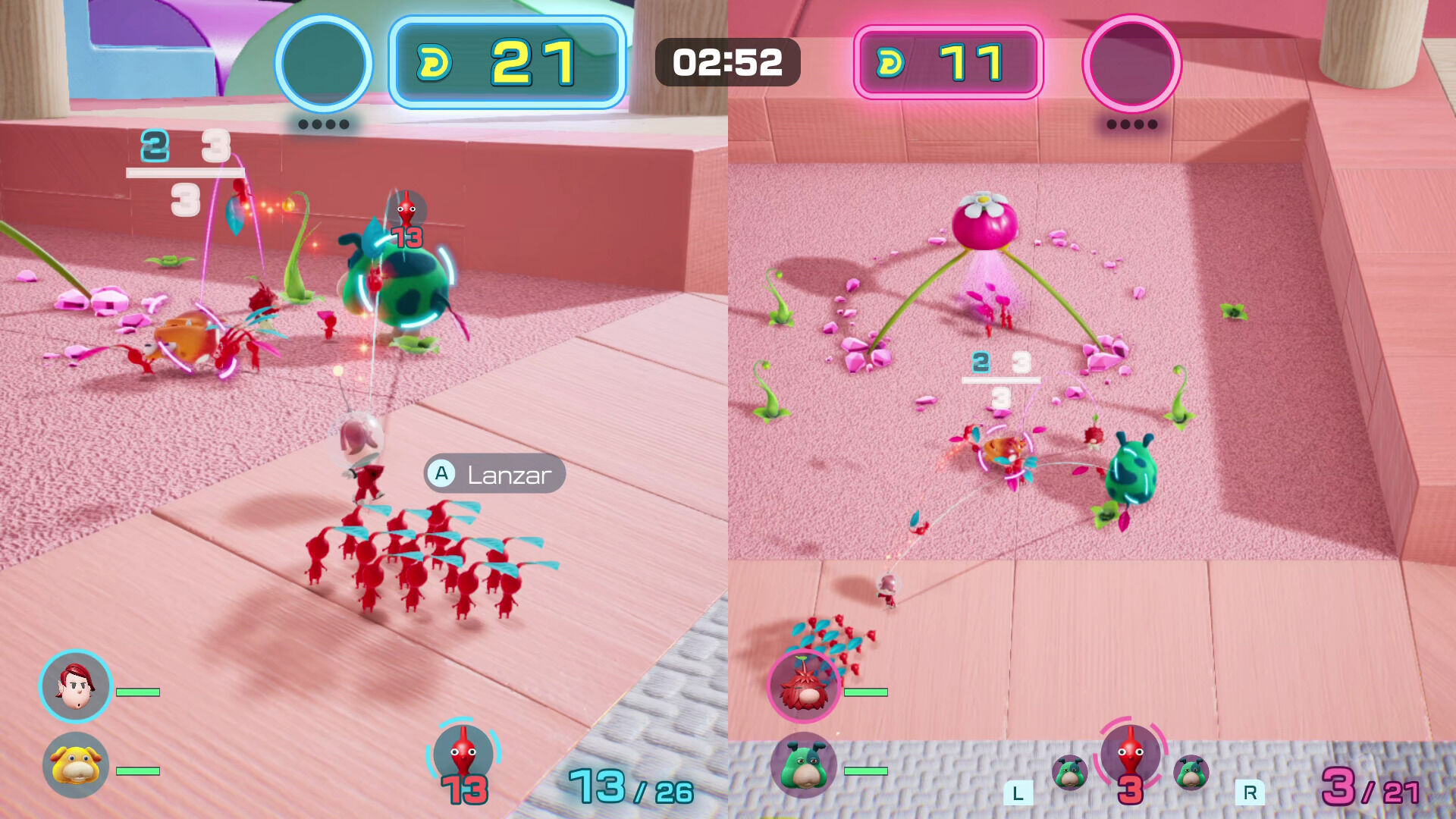 Por su parte, los Desafíos Dandori nos llevan a un nivel en el que deberemos recoger con los Pikmin que nos faciliten todos los tesoros y monstruos que podamos antes de que acabe el tiempo. El objetivo principal aquí es alcanzar la puntuación mínima que nos indiquen, aunque, una vez más, completar todas estas pruebas con un rango de platino es algo que nos requerirá de una buena planificación.