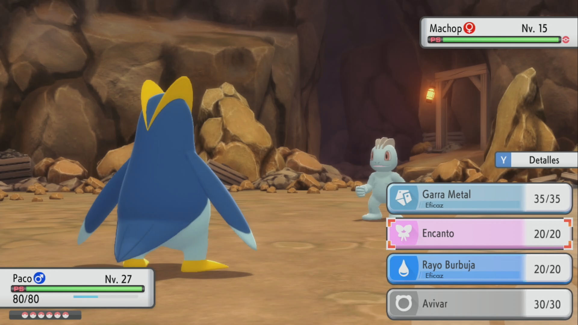Los juegos de DS no eran particularmente difíciles, pero quienes los jugaran recordarán algunos enfrentamientos que exigían cierto dominio del sistema de combate. Aquí, cualquiera que conozca la tabla de tipos se encontrará con que no hay reto alguno. Esto se debe a dos motivos. El más crucial es que tras cada combate se reparte experiencia a todos los Pokémon del equipo. No se puede desactivar, lo que provoca que estemos habitualmente una decena de niveles por encima de las criaturas a las que nos enfrentamos. También afecta, sobre todo en las etapas finales de la aventura y en el contenido de final de juego, la influencia de la amistad de los Pokémon con el entrenador en el combate. Esa mecánica ya estaba en las últimas entregas, pero aquí tiene mucha más presencia. Por lo tanto, es habitual que los Pokémon que llevan mucho tiempo en nuestro equipo eviten ataques enemigos, realicen golpes críticos constantes y sobrevivan a ataques devastadores.