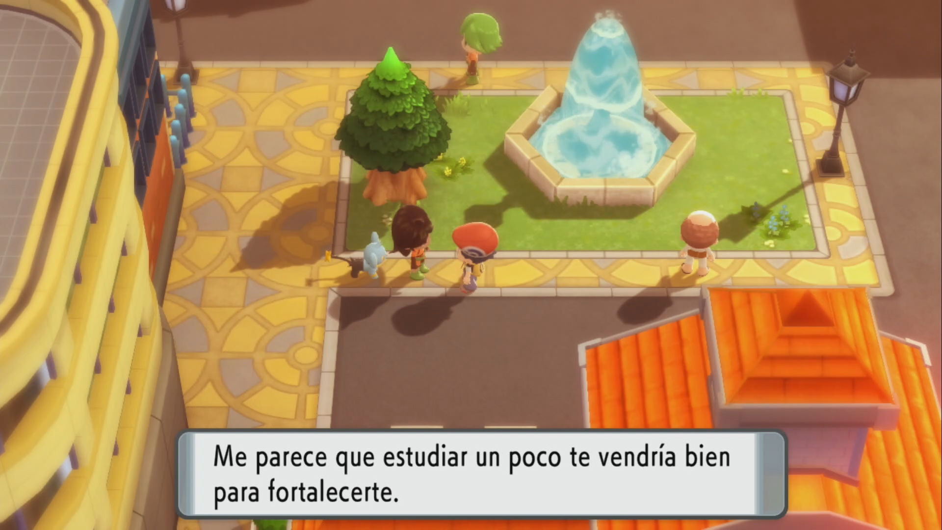 El resultado es un juego en el que el primer adjetivo que se nos pasa por la cabeza al describir su apartado artístico es cuqui. Es un título precioso que obviamente no estruja el hardware que lo corre, pero que ofrece escenarios muy bonitos, personajes chibi muy detallados y batallas con entornos y efectos muy pintones. Luce especialmente bien en portátil, pues en modo televisor se pierde algo de nitidez. Además, podemos recorrer el mundo con cualquier Pokémon fuera de la Poké Ball cuyas animaciones están muy cuidadas, y en la Plaza Amistad podemos deleitarnos con hasta seis criaturas monas siguiéndonos.