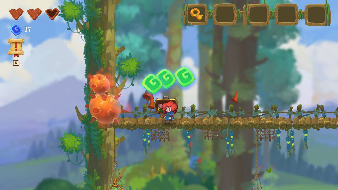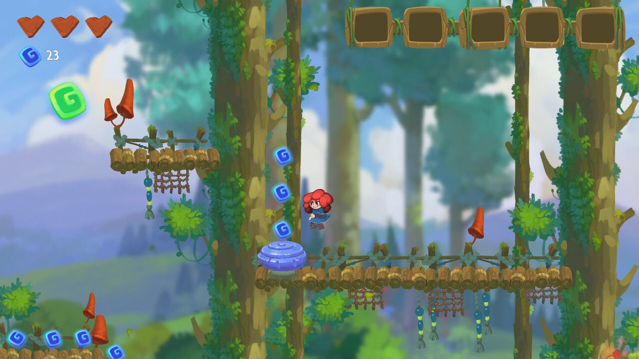La base que sostiene a esta propuesta son las plataformas clásicas de estilo bidimensional. Controlando a la protagonista debemos ir superando diferentes zonas del bosque que acoge esta aventura tratando de, básicamente, no perecer. Son bastantes los obstáculos, trampas y adversarios que se dan cita en cada fase y, a pesar de que no es el título más difícil del mundo, su apariencia tan colorida puede llegar a engaño dado que hay momentos relativamente exigentes. Y se agradecen, dado que son los que nos proporcionan los mejores momentos de diversión que alberga esta producción y, encima, son los que más hacen por prolongar la escasa duración de esta propuesta, que da para unas 3 o 4 horas como mucho.