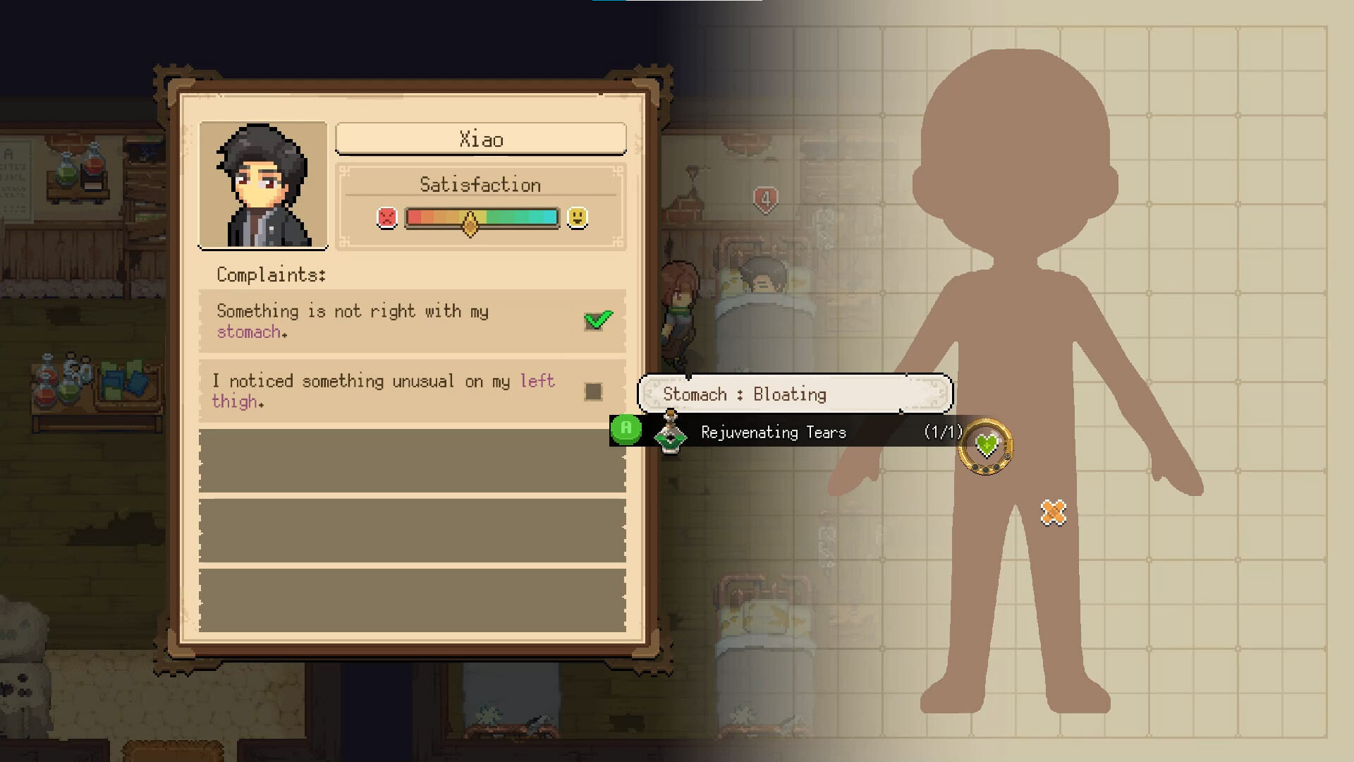 Lo primero que debemos hacer antes de dirigirnos a las afueras de Moonbury en busca de ingredientes para nuestras pociones curativas es realizar un completo diagnóstico tomando como punto de partida los síntomas que padecen los pacientes que son trasladados a la clínica. Para llevar a cabo con éxito los diagnósticos de cada caso individual, el juego nos propondrá una serie de pequeños retos a modo de minijuegos que van desde un juego de ritmo que nos desafiará a pulsar las flechas del mando en el momento adecuado, hasta otro que va de memorizar una sucesión de botones que debemos pulsar posteriormente en el orden correcto. Ninguno de los minijuegos es particularmente difícil y estos no se complican a medida que avanzamos, pero aportan algo de variedad a la propuesta.