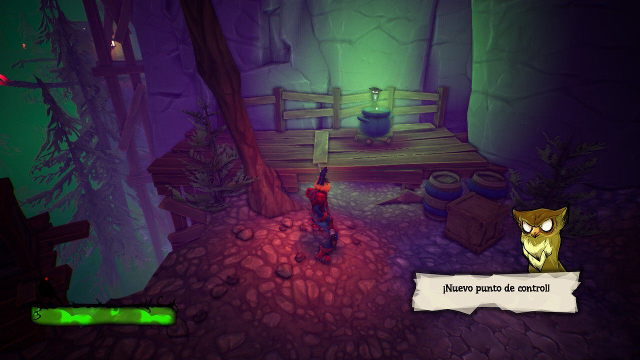 Por otra parte y en lo relacionado con su vertiente técnica, estamos ante una obra humilde y de bajo presupuesto pero que ostenta unos valores de producción bastante notables teniendo en cuenta su origen indie. La atmósfera de estilo Halloweenesco es de las mejores que hemos disfrutado últimamente, y su protagonista goza de mucha personalidad y animaciones muy buenas. Los fondos no destacan por su gran tamaño pero sí por su variedad (en especial uno de ellos…), gozando además de una iluminación muy apropiada. El apartado sonoro también es muy notable y además de su buen doblaje (en inglés subtitulado a nuestro idioma), las melodías nos han gustado bastante y los sonidos que se dejan apreciar durante las batallas cumplen con creces.