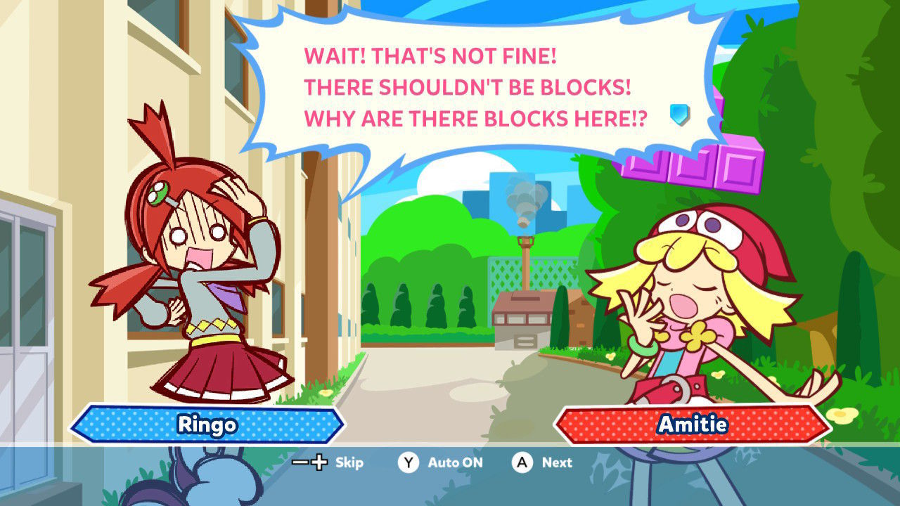 Uno de los más importantes para un jugador es el modo Aventura, una especie de campaña o modo historia que está dividido en capítulos, formado cada uno de ellos por diez fases. Entre pantallas se nos va contando una peculiar historia a base de ilustraciones y diálogos en la que los mundos de Puyo Puyo y Tetris han colisionado, con una serie de personajes a cada cual más extravagante, y unas conversaciones sorprendentemente abundantes y prescindibles, que muy probablemente acabaréis saltando para pasar directamente a la acción.