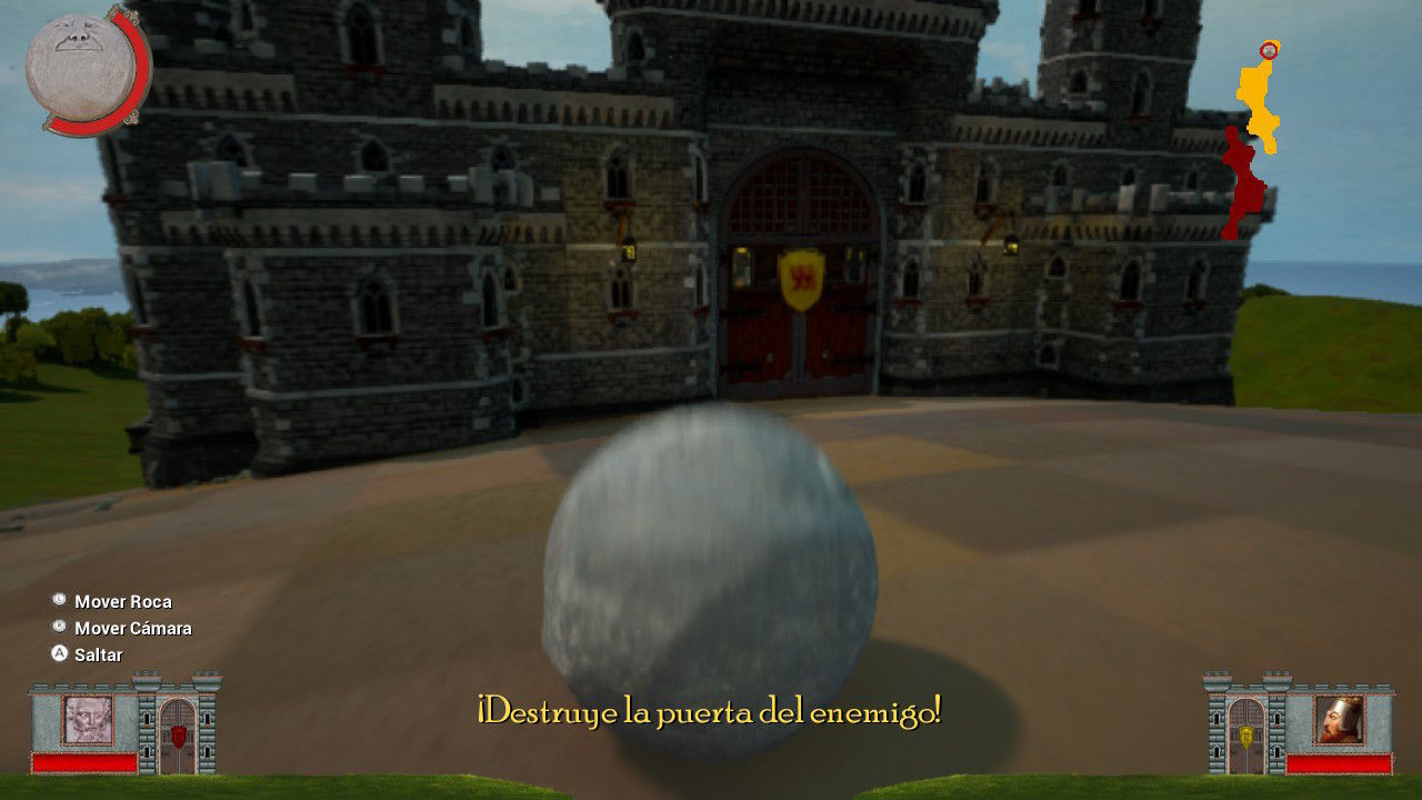 Para destruir poco a poco la estructura de la fortaleza que tenemos que derruir, tenemos que emplear una serie de rocas redondas de un tamaño gigantesco que es necesario guiar a lo largo de un camino no demasiado extenso pero sí algo sinuoso en ocasiones. En este caso se une la habilidad con un elemento táctico destacado, dado que además de tener que demostrar cierto nivel de habilidad para dirigir la roca de turno, también es necesario elegir qué tipo de piedra vamos a usar en cada ataque (hay varias distintas con sus propias características de peso, tamaño, etc.). Y no sólo eso, dado que nuestros rivales irán protegiendo su castillo con diferentes obstáculos y elementos defensivos que tenemos que ir eliminando o esquivando, depende de lo que más nos convenga en cada ocasión, enfatizando más si cabe dicho aspecto estratégico.