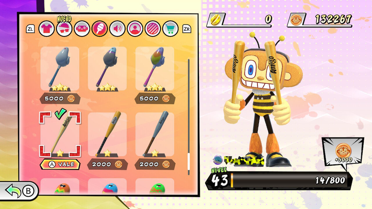 La participación en cualquier modo de juego va dando puntos de experiencia para ir subiendo de nivel y, al hacerlo, se consigue dinero que sirve para comprar aspectos para Amigo, porque las posibilidades de personalización del mono son altísimas, hay decenas de trajes, sombreros y complementos, color de piel, maracas —incluso el sonido de estas (aunque la mayoría acaba distrayendo a la hora de jugar)— y el aspecto del avatar online del jugador. Algunos de estos aspectos se desbloquean al llegar a un nivel o se compran con monedas de oro, que se consiguen quedando en los primeros puestos del modo Fiesta Mundial.