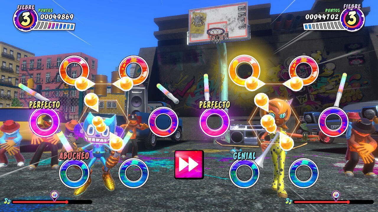 Aunque inicialmente tuvimos algún problema para que el juego captase los movimientos inferiores del mando, lo resolvimos con la ayuda de las guías de las maracas que aparecen de manera opcional en pantalla y no tardamos en acostumbrarnos al control que, por otro lado, es satisfactorio en todas las dificultades aunque nos quedamos con la sensación de que a veces daba por válidos movimientos que no teníamos tan claro haber acertado. Esto sucedía en momentos puntuales, ya que el juego no es precisamente benevolente con el jugador y hay misiones casi imposibles de conseguir.