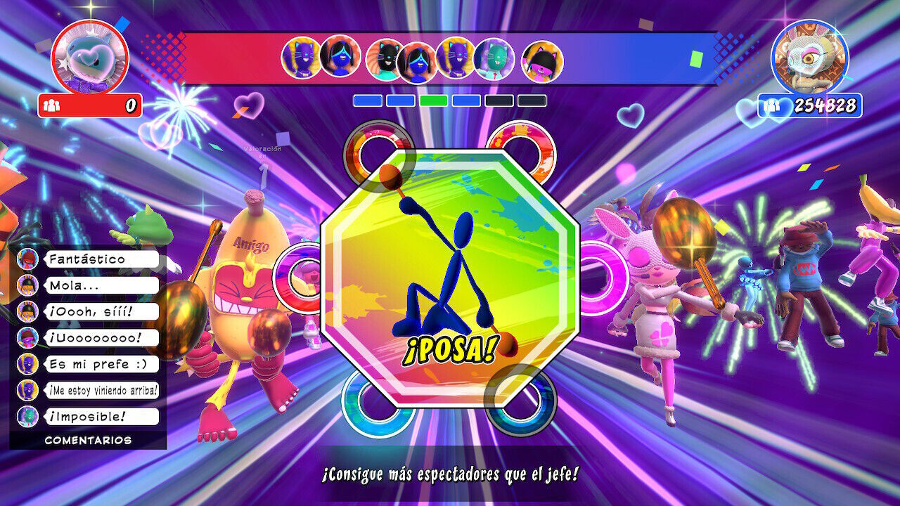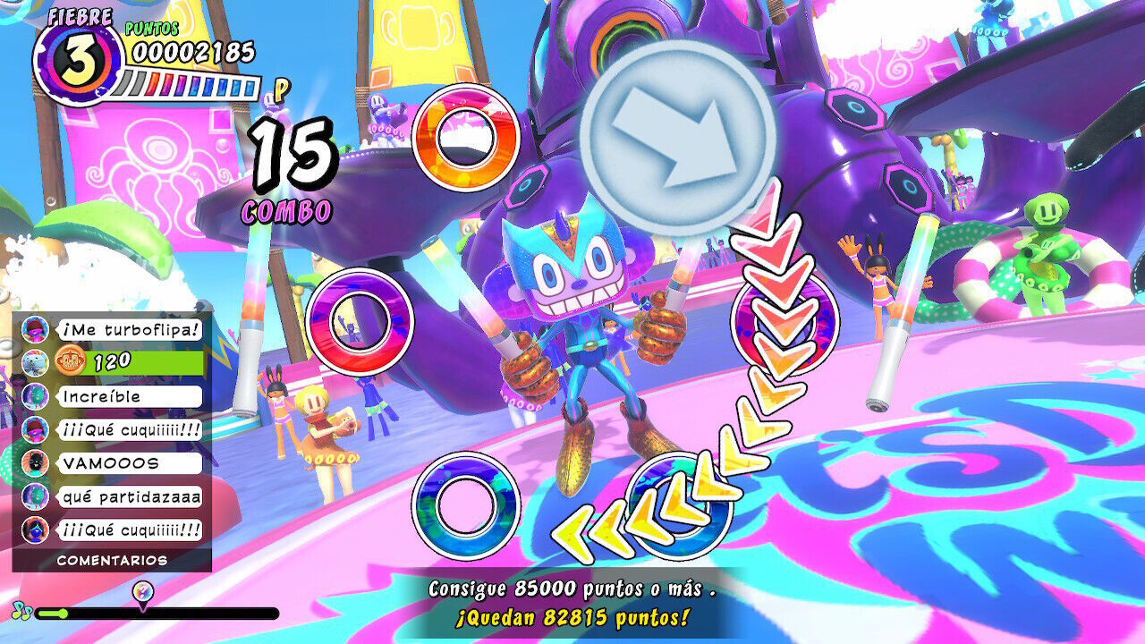 En las opciones para una persona la que más nos ha gustado es StreamiGO!, una especie de modo historia que convierte al jugador en un aspirante a influencer que debe ir superar distintos desafíos que se van desbloqueando a base de conseguir más seguidores, es una puesta al día pasando de una historia más tradicional a algo tan en boga ahora como los creadores de contenido. Esos desafíos se refieren a objetivos como lograr un rango de puntuación, un combo determinado de perfectos o no tener muchos abucheos. Estos últimos suponen una subida importante de la dificultad (y con una gran recompensa). Siempre hay opciones suficientes para no quedarse atascado, aunque a veces es inevitable repetir varias veces misiones. Los enfrentamientos contra los jefes son divertidos y la progresión por este modo de juego es tan interesante como para querer seguir al menos hasta superar un nuevo reto. Para que tenga más atractivo, cada semana algunas de estas misiones concederán más seguidores de lo habitual.