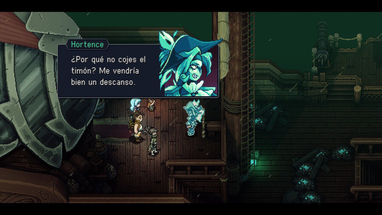 El colofón final lo tenemos en su apartado audiovisual, el cual nos deleita la vista con unos gráficos pixel art increíblemente detallados que nos han fascinado con los sprites de los personajes y sus elaboradas y fluidas animaciones. Aunque busca emular el aspecto de los JRPG de 16 bits, a nivel técnico es un juego que hubiese sido imposible en consolas como SNES o Mega Drive, ya no solo por el detalle de los escenarios, sino por los efectos que se usan, la cantidad de colores que pone en pantalla y otros muchos detalles que nos recuerdan constantemente que lo que tenemos entre manos es un juego de 2023. Y todo ello con una dirección de arte preciosa y con personalidad que nos ha enamorado con la variedad de sus entornos y los momentos tan espectaculares que nos ha llegado a ofrecer en determinadas partes de la aventura.