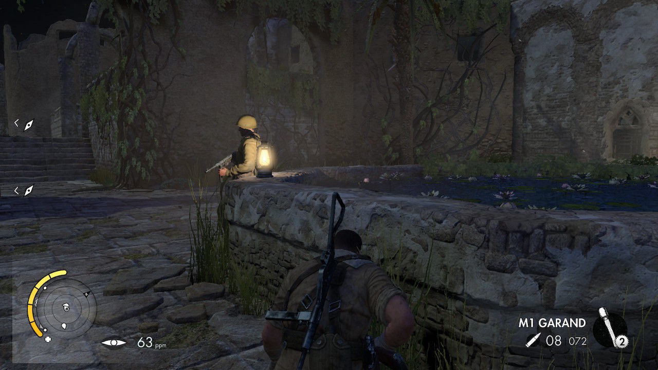 A pesar de todos nuestros esfuerzos, habrá más de una ocasión en la que no será posible cruzar bajo territorio enemigo sin ser detectados y las tropas rivales darán la voz de alarma. Cuando eso sucede el sigilo da paso a las escenas de acción, las cuales se muestran algo torpes en nuestra opinión y carentes de chispa, aunque cumplen sobradamente con su cometido. Se nota que no es el punto fuerte de este título (nunca lo ha sido), pero tampoco son un desastre. Lo más recomendable en estos casos es liquidar a los rivales que tenemos más a tiro y tratar de huir para reubicarnos y dejar que pase la tormenta de balas. Una retirada a tiempo puede salvarnos la vida más de una vez, tened esto en cuenta.