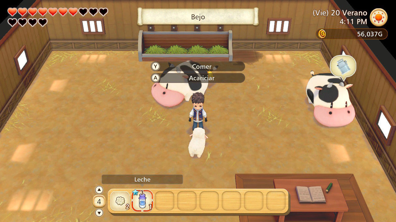 Parte de la culpa de esto está en nosotros mismos, claro, incapaces de dejar de lado el crecimiento económico en pos de actividades satisfactorias como la pesca, menos provechosa cuanto más jugamos; pero también en decisiones de diseño del juego no intencionadas o que, si lo son, no están muy reflexionadas. Por un lado, la gestión del inventario es un caos y pronto tendremos la granja repleta de cajas que no sabemos qué contienen, duplicando ítems en unas y en otras, lo que nos puede tener un tiempo preciado de acá para allá buscando el objeto que necesitamos. Y aunque es cierto que cuando estás en menús el tiempo no avanza, sí se pierde tiempo real por cómo funciona la gestión de inventario y de las herramientas: aunque ahora hay una bolsa de herramientas independiente, no se entiende que no la hayan hecho accesible con alguno de los muchos botones que quedan sin utilizar de los Joy-Con de Switch.