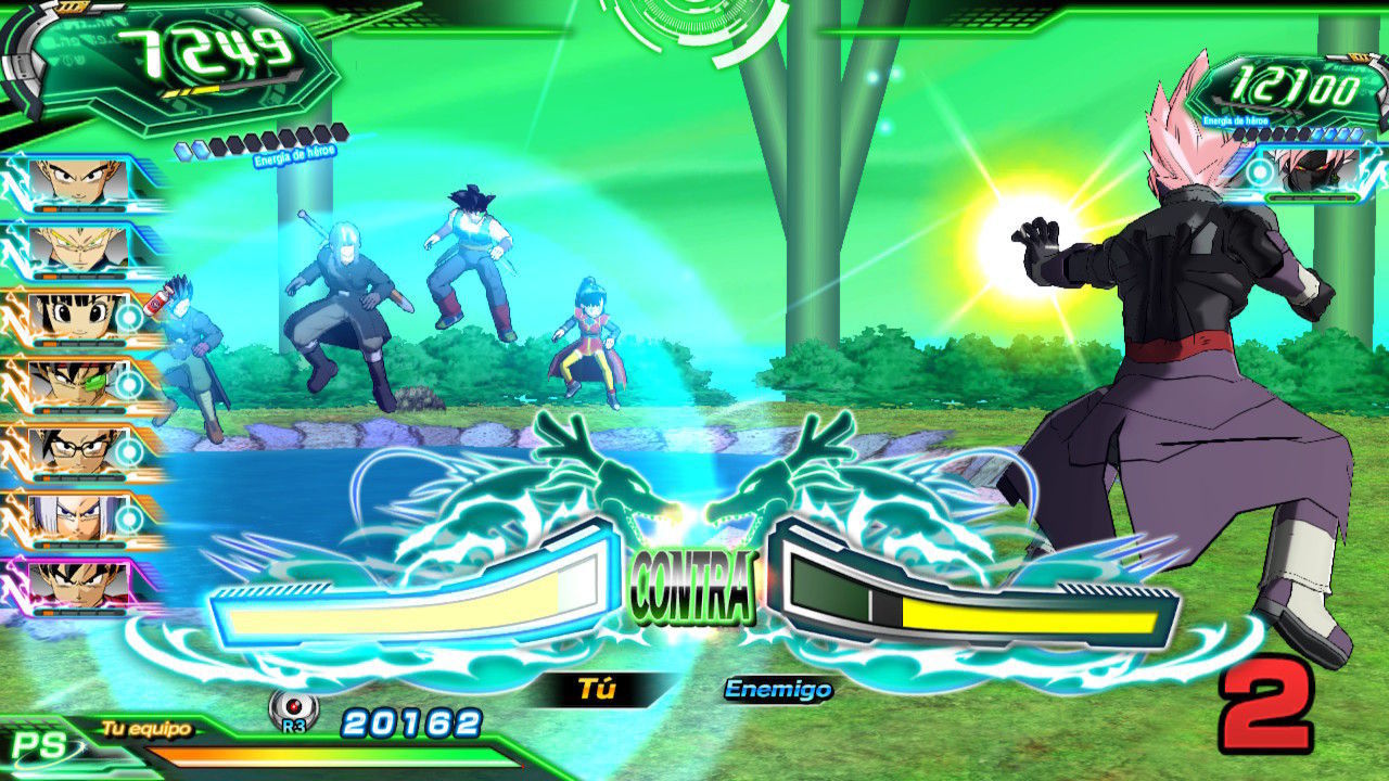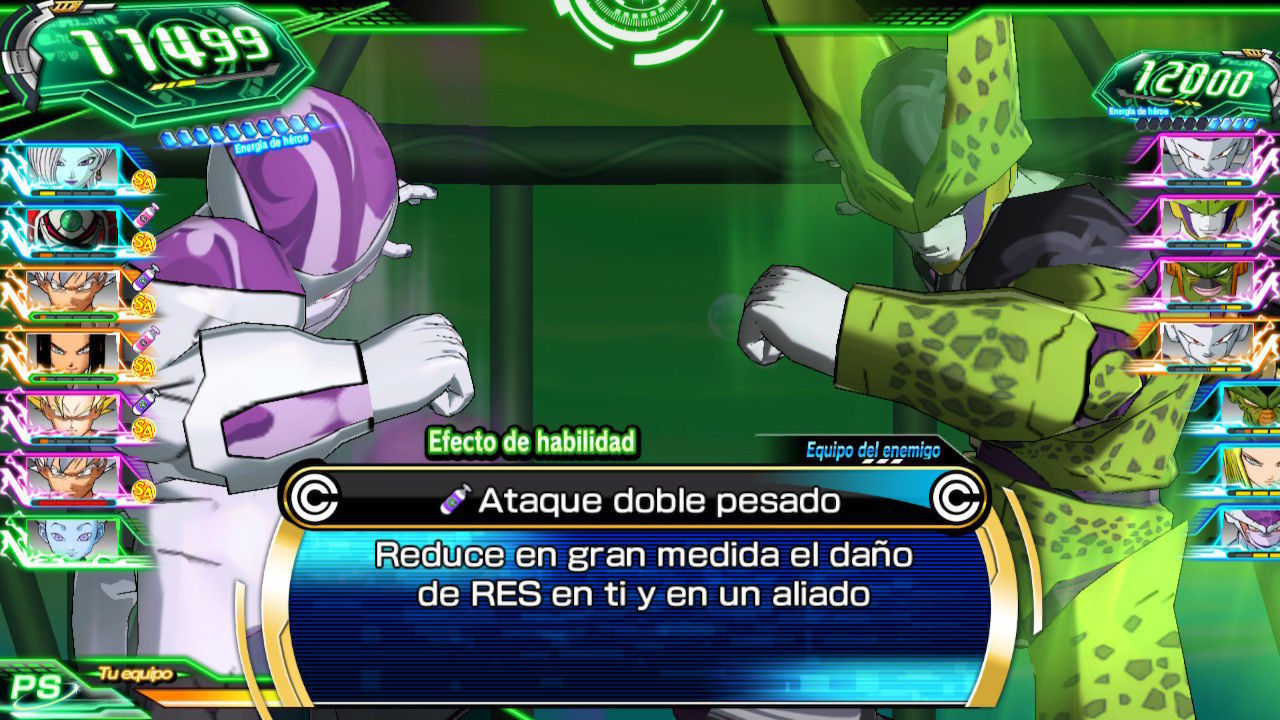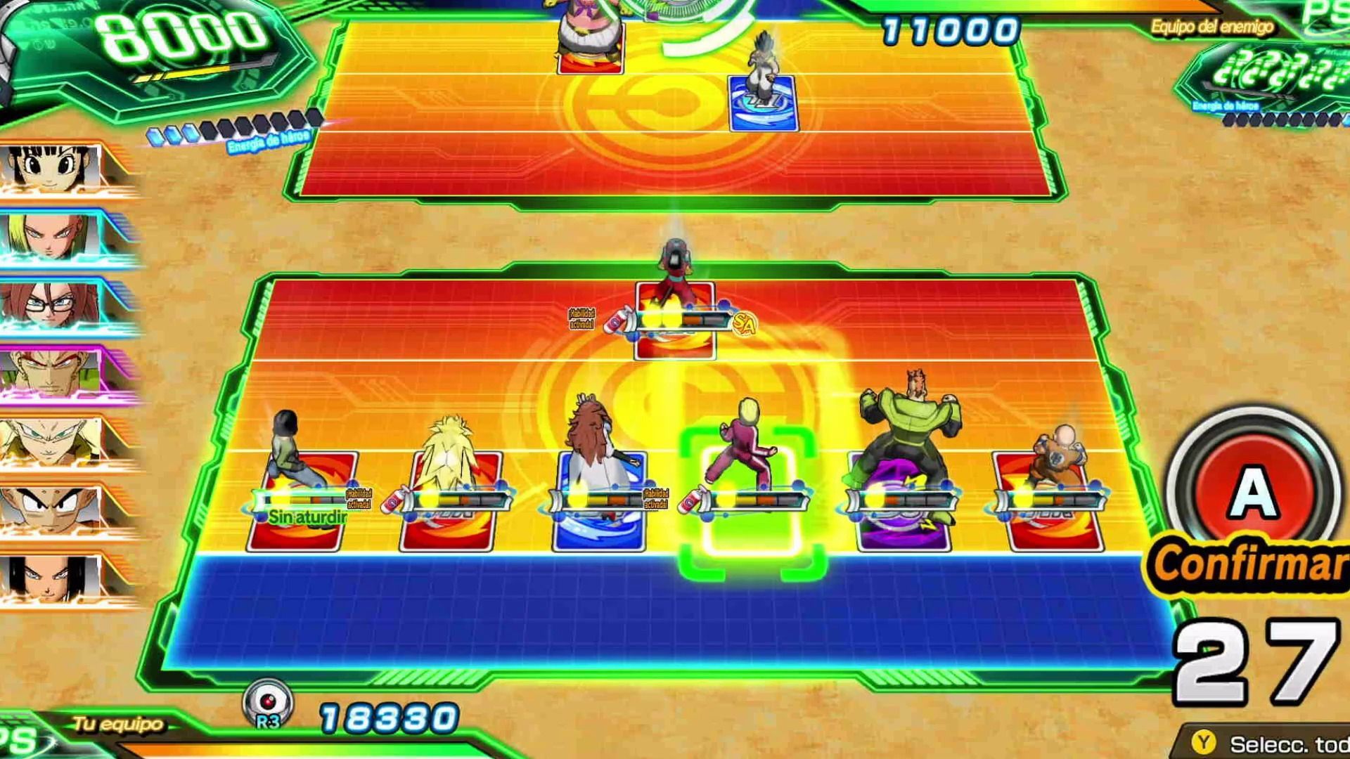 Cuando finalizamos la ronda de preparación de cada turno, se suma todo el poder acumulado por nuestros personajes y el del rival, y el que más haya conseguido será el que ataque primero. Además, por cada 3.000 de poder, obtendremos un punto de energía de héroe, un recurso valiosísimo que necesitaremos para que nuestros luchadores lancen sus ataques definitivos (dependiendo de la carta, necesitarán más o menos) y que no se gasta a menos que el rival haga algo para reducirlo o pongamos en práctica un comando de unidad, unas técnicas especiales que pueden realizar ciertas combinaciones de personajes.