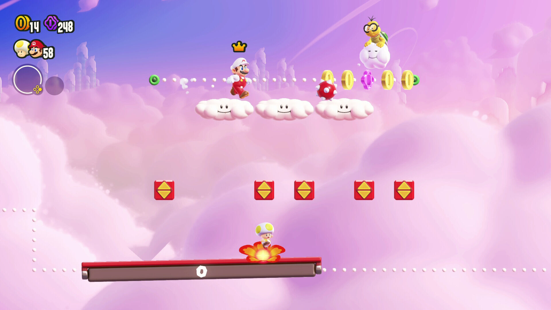 Solo por sus increíbles controles y físicas y su delicioso e imaginativo diseño de niveles ya nos bastaría para considerarlo como uno de los mejores títulos de plataformas que hemos jugado nunca, pero la cosa va mucho más allá cuando entran en juego las flores maravilla, la que es sin duda la gran novedad de esta entrega.