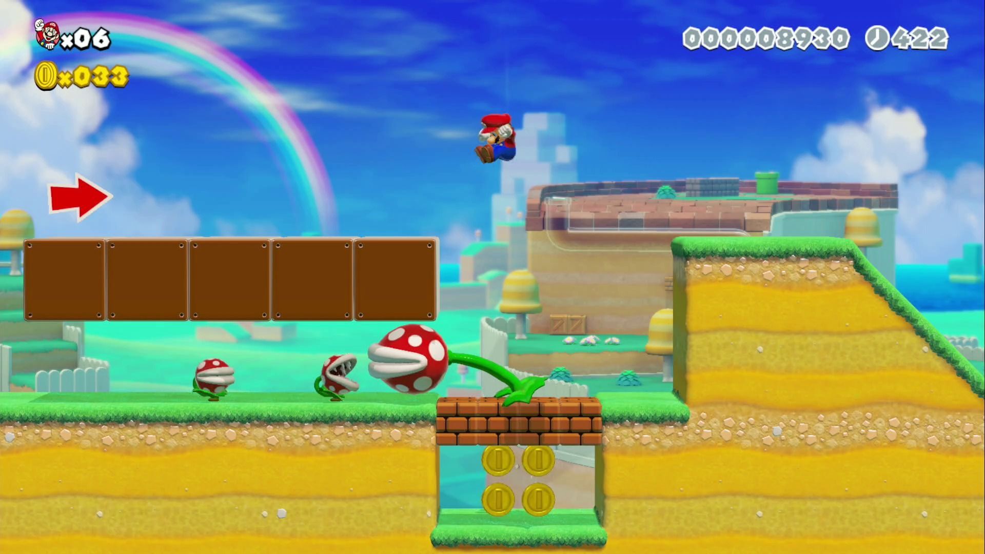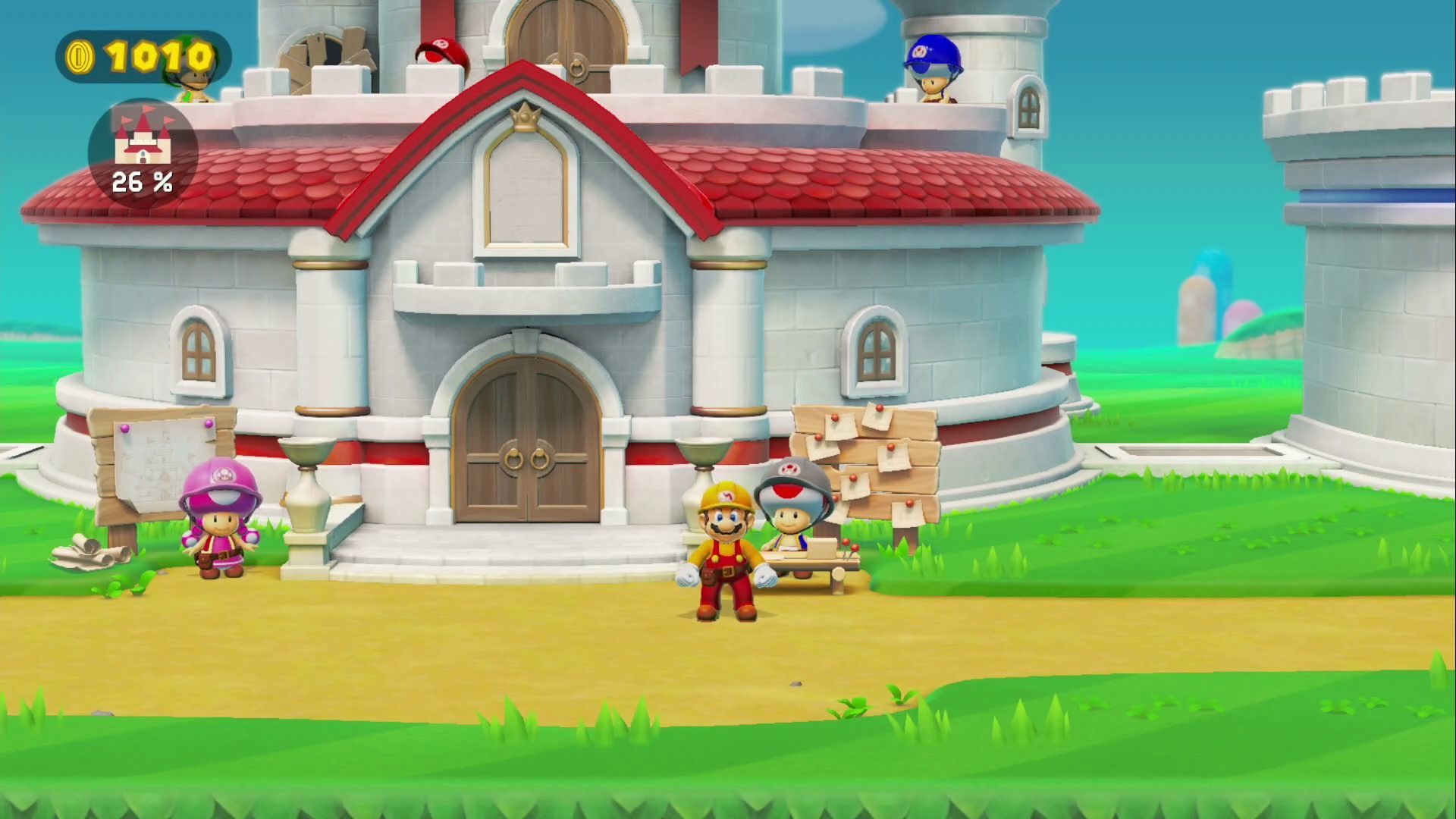 La premisa es bien sencilla: conseguir monedas para reconstruir el Castillo de Peach. ¿Y cómo hacemos esto? Superando niveles. Su desarrollo es tan simple y directo como suena, pudiendo acceder a cada fase hablando con el capataz de la obra, aunque también podremos interactuar con el resto de personajes de la zona, quienes, a veces, nos desbloquearán pantallas secretas.